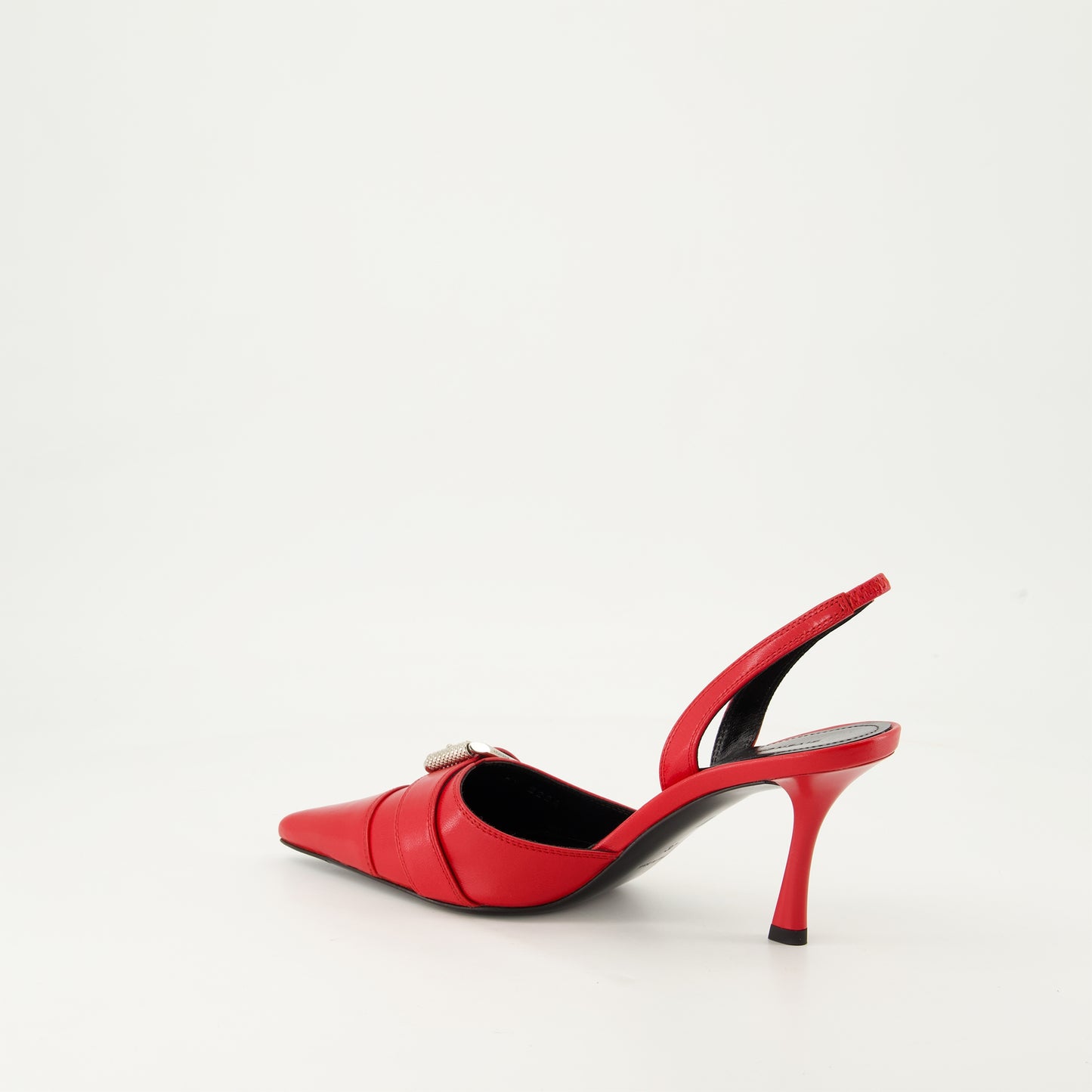 Escarpins Voyou Givenchy collection Automne-Hiver 2024 pour Femme. Réalisé en cuir lisse. Article Couleur unie rouge. Bout pointu et Semelle en cuir.