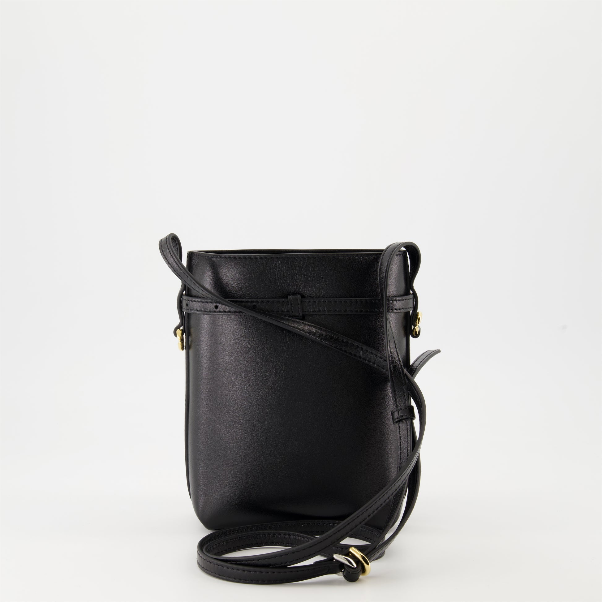 Sac seau Voyou Givenchy collection Automne-Hiver 2024 pour Femme. Réalisé en cuir de veau légèrement foulonné. Article de couleur Noir. Bandoulière ajustable.