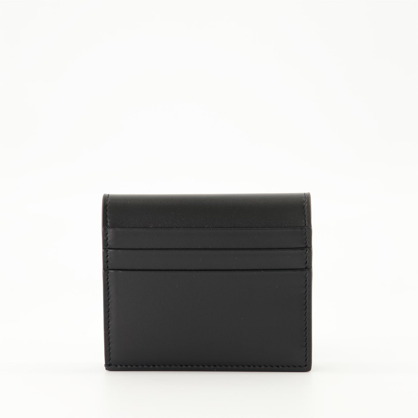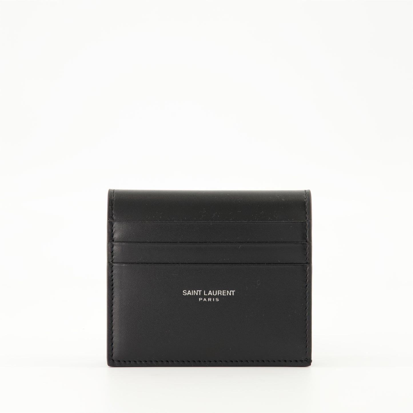 Porte-carte réversible en cuir lisse de Saint Laurent, conçu pour homme. Ce modèle fait partie de la collection Printemps-Été 2025 et se décline en noir avec un logo en lamé.
