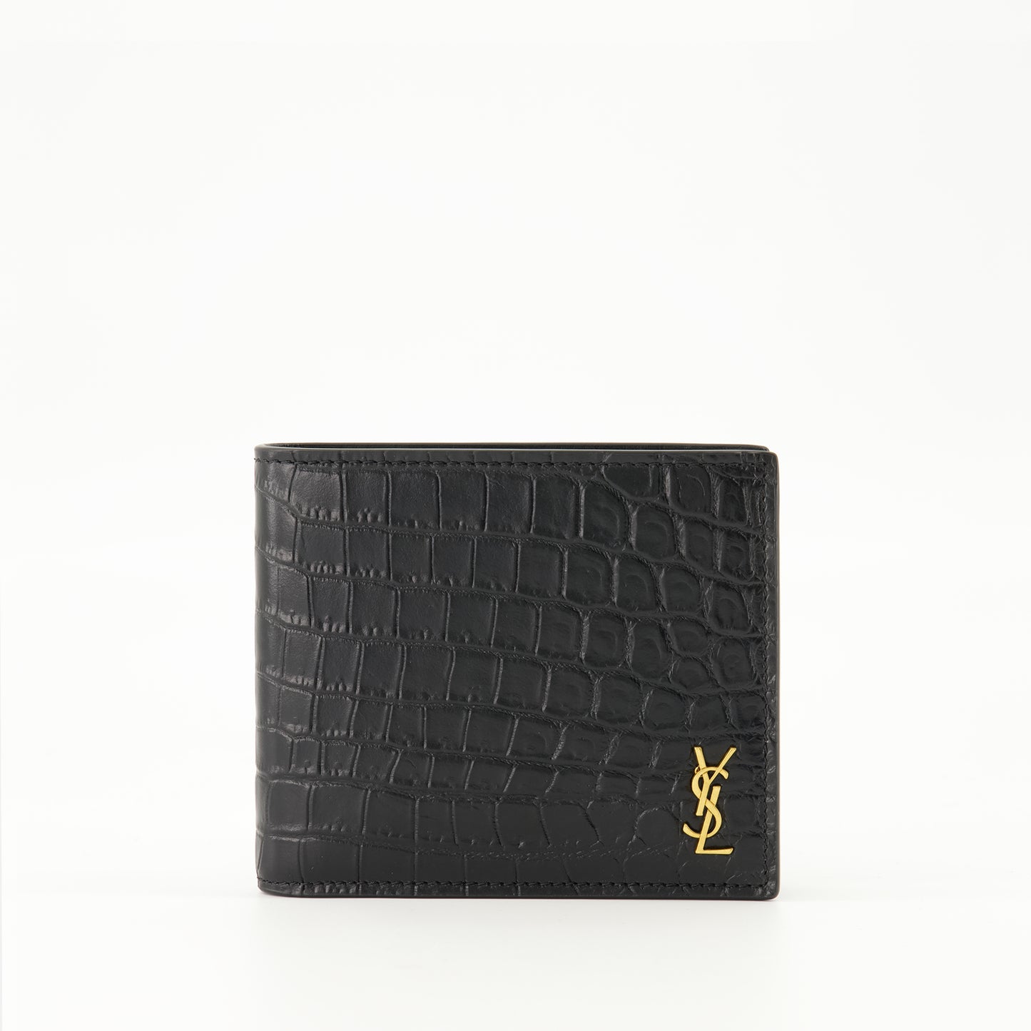 Le portefeuilles Tiny Cassandre East/West embossé crocodile de Saint Laurent est un accessoire pour homme. Il fait partie de la collection Printemps-Été 2025 et est réalisé en cuir de veau noir.