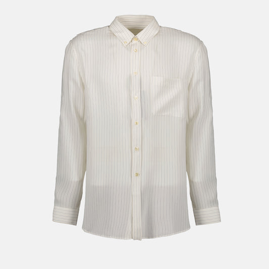 Classique blanche, à rayures, à imprimé ou en denim : la chemise reste un pilier du vestiaire masculin. Prada, Saint Laurent, Fendi ou Burberry déclinent ce basique avec caractère, entre coupes ajustées, matières nobles et finitions maîtrisées. Manche courte ou longue, au choix.