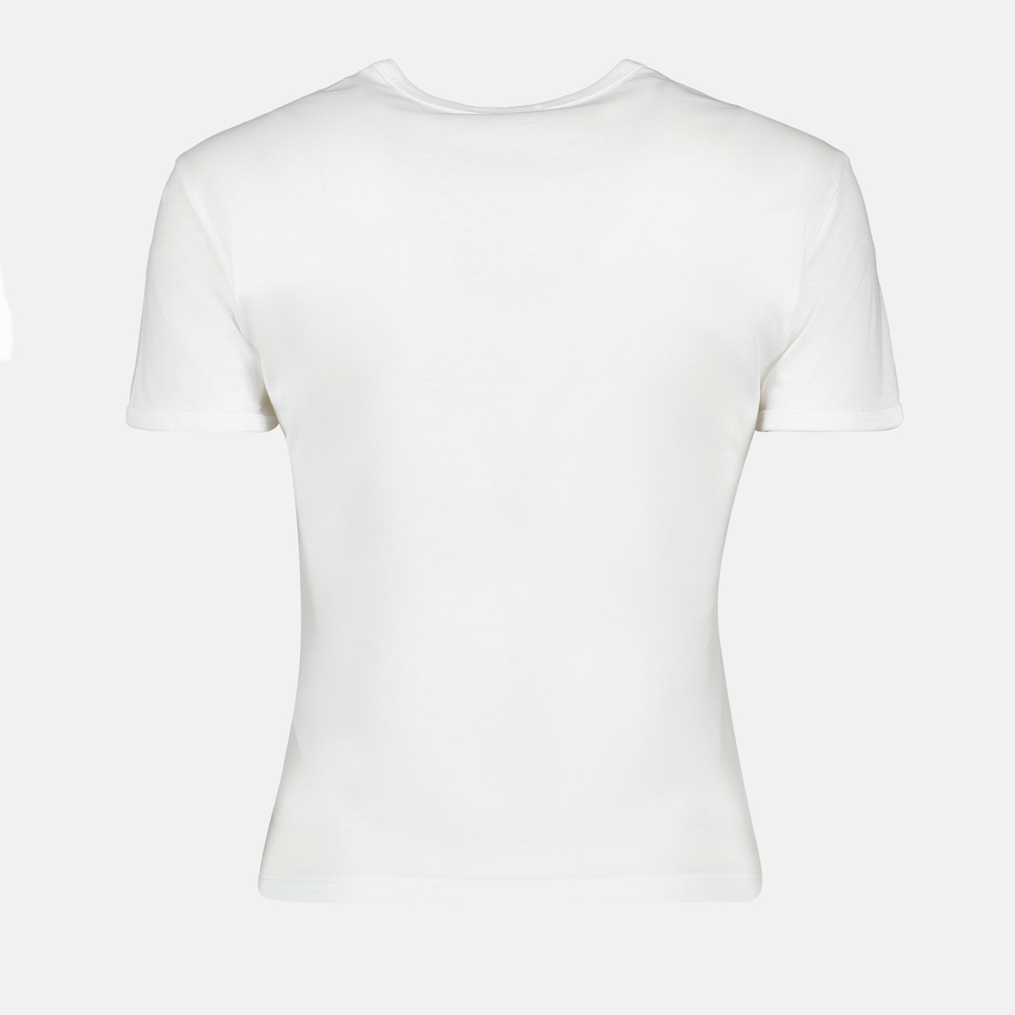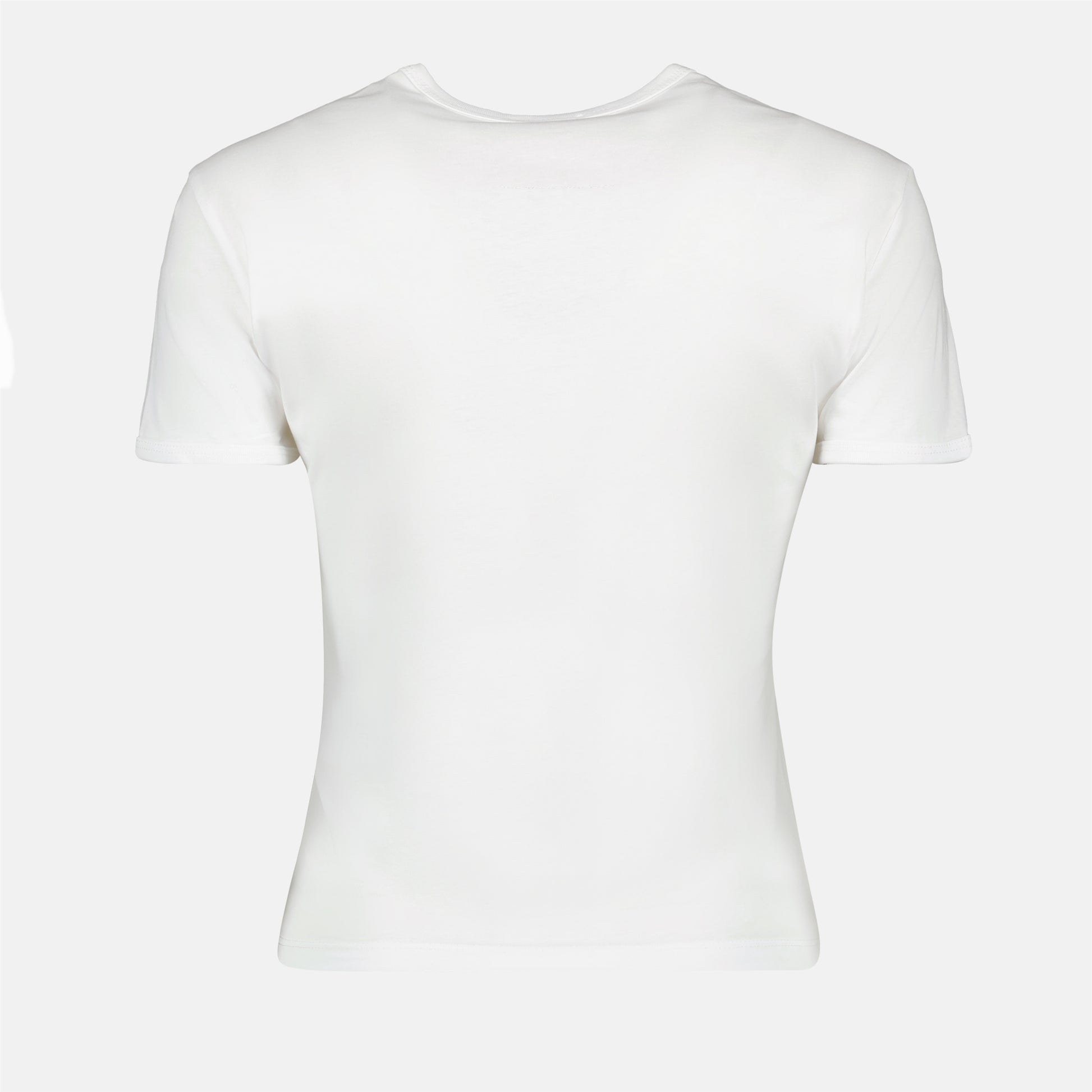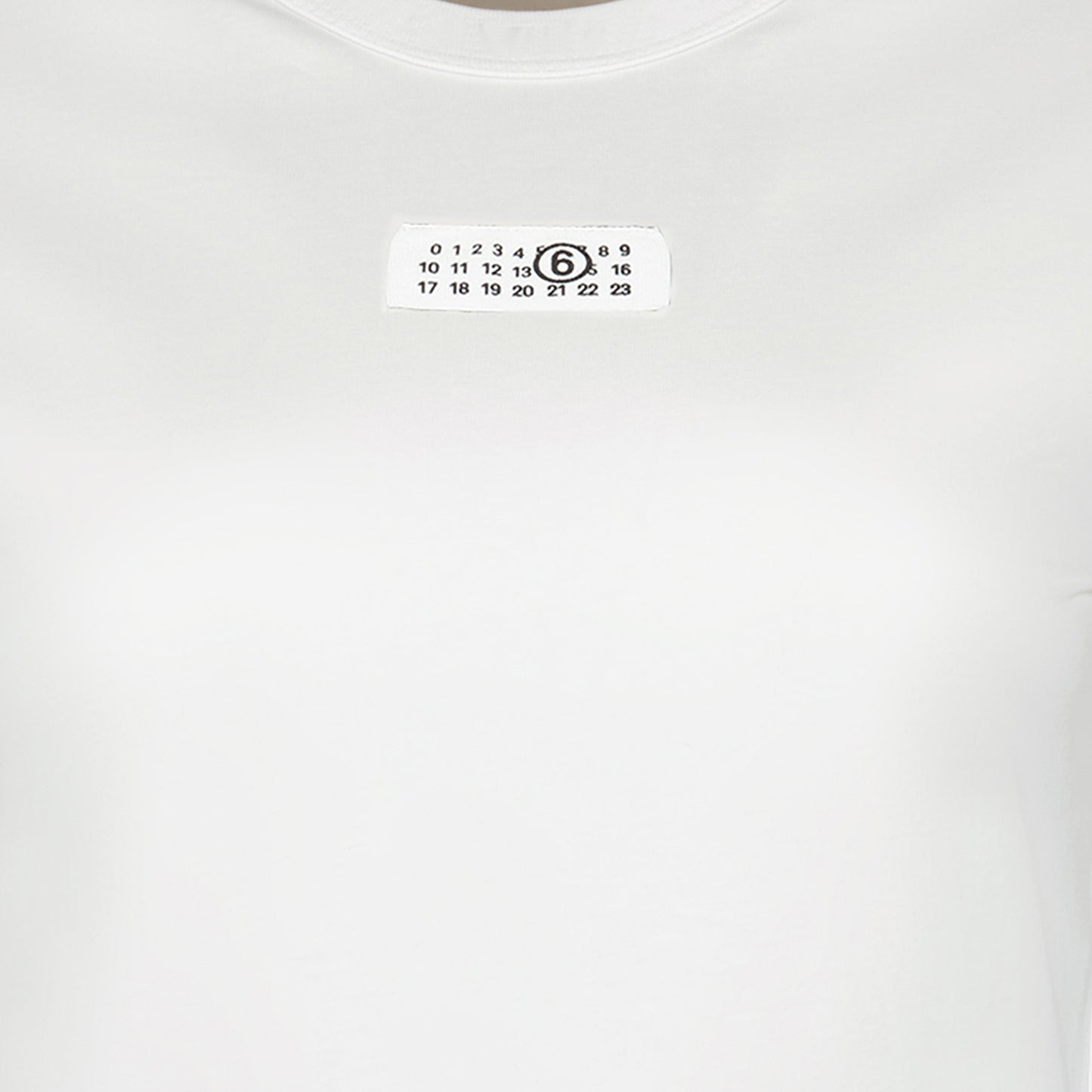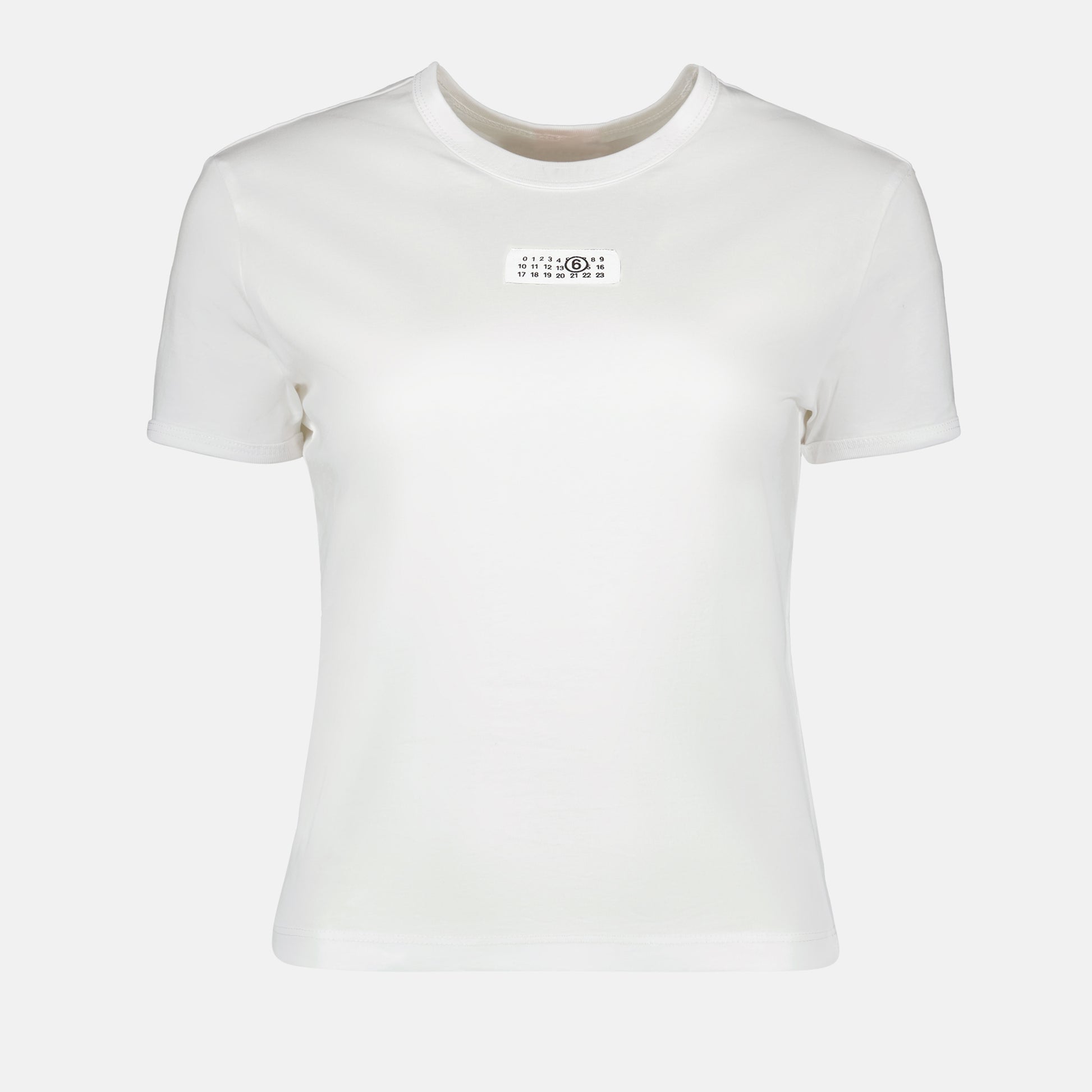T-shirt Numeric blanc en coton de la marque MM6, conçu pour femme. Cette pièce fait partie de la collection Printemps-Été 2025 avec un col rond et une coupe courte.
