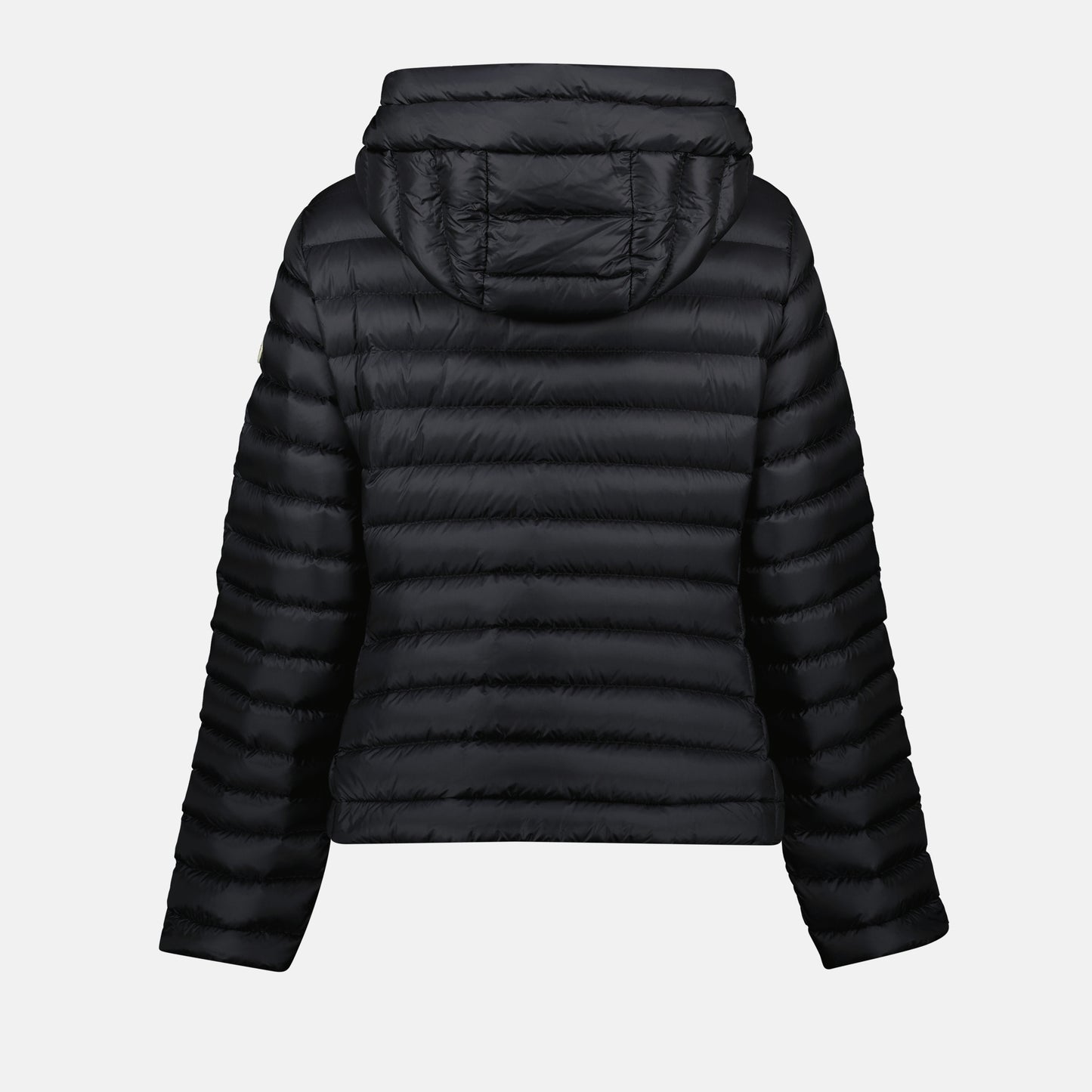 Doudoune matelassée Ige noire de la marque Moncler, conçue pour les femmes, est une pièce élégante et fonctionnelle. Elle fait partie de la collection Printemps-Été 2025.