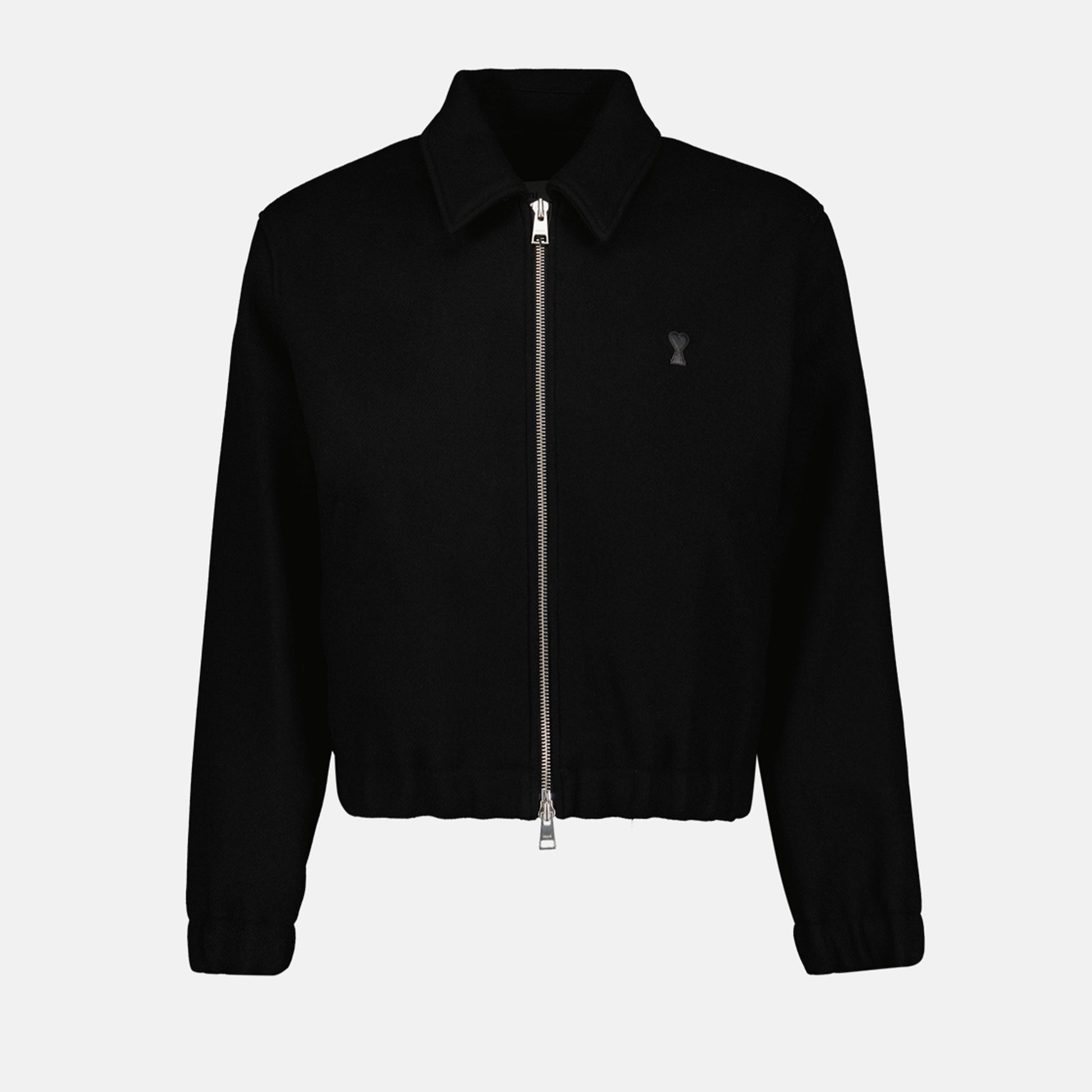 Blouson en laine AMI Paris collection Automne-Hiver 2024 pour Homme. Réalisé en laine. Article Couleur noir. Col classique et Manches longues.