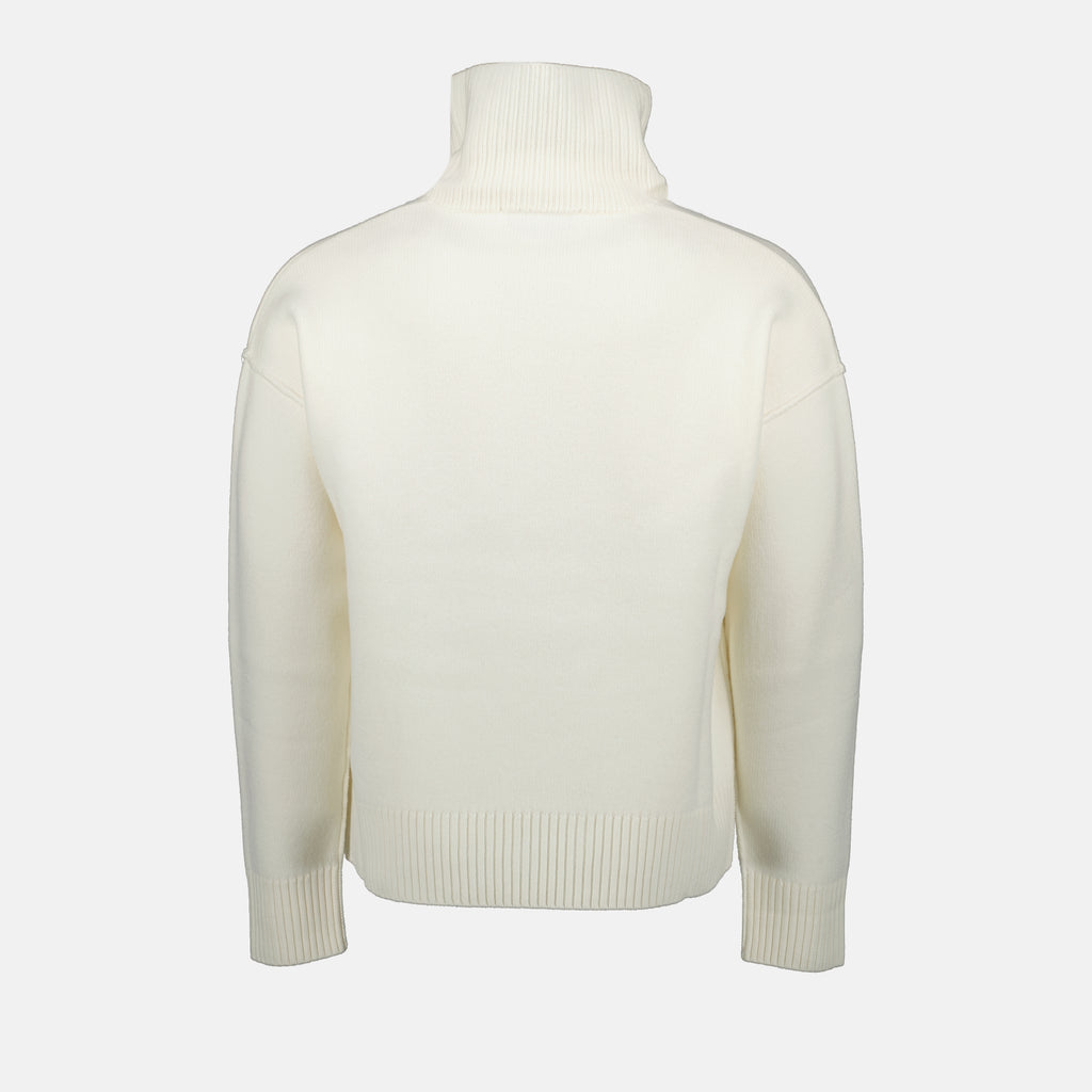Ami de Coeur white sweater from the brand Ami Paris, unisex, made of wool with a round neck and long sleeves. This model is part of the Spring-Summer 2025 collection.