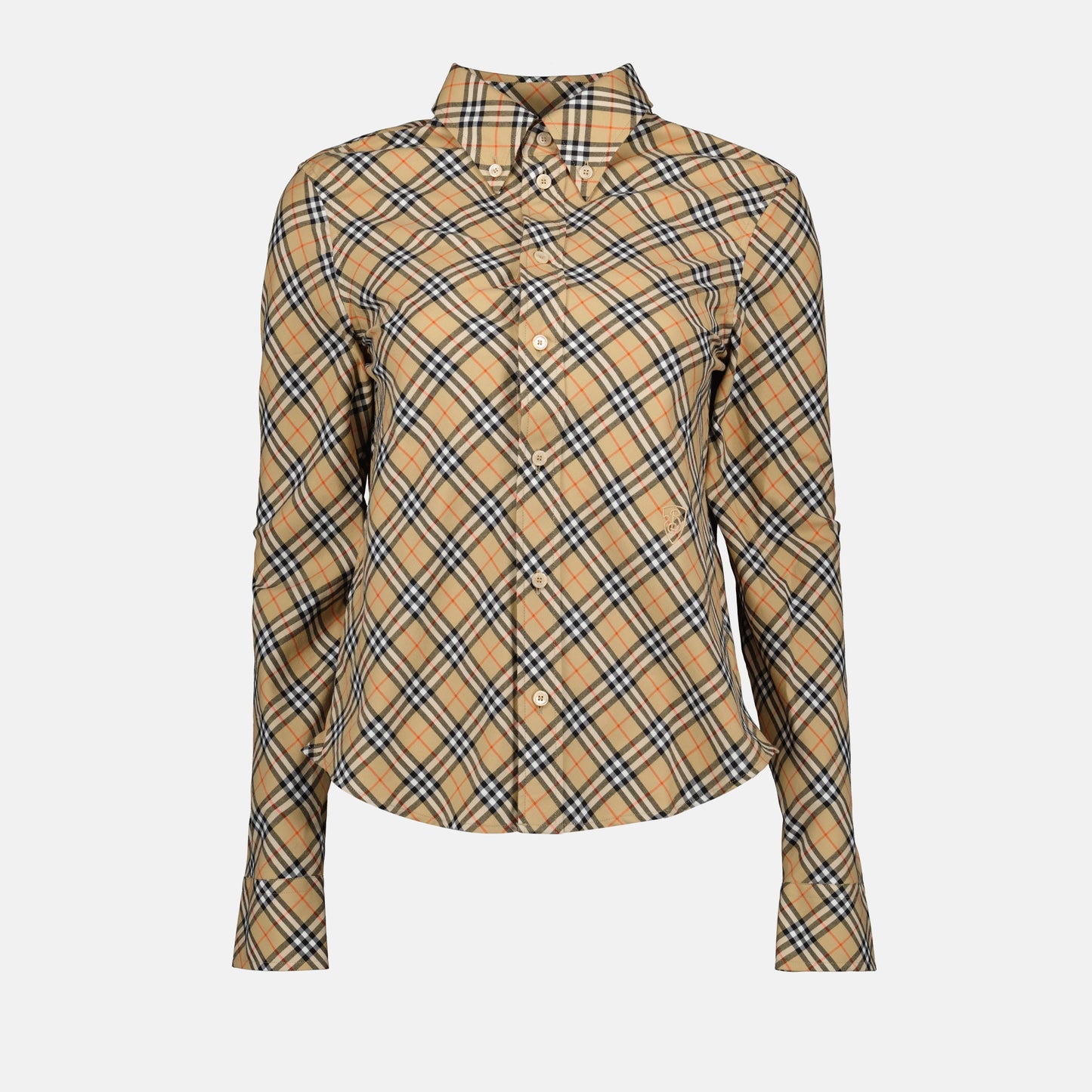 Check shirt from the Burberry Autumn-Winter 2024 collection for Women. Made of cotton. Vintage check printed item. Classic collar and long sleeves.