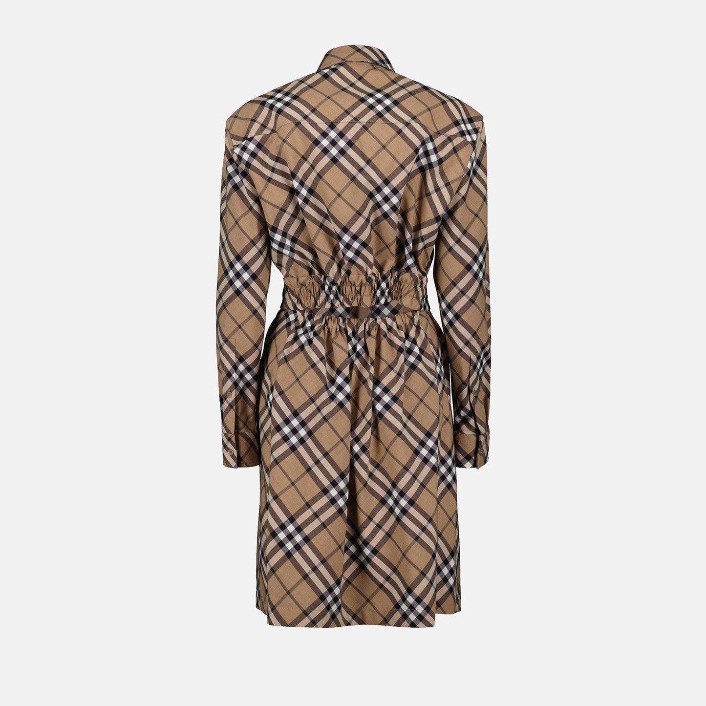 Checked shirt dress from Burberry's Fall-Winter 2024 collection for Women. Made from wool. Vintage Checked Print item. Classic collar and long sleeves.