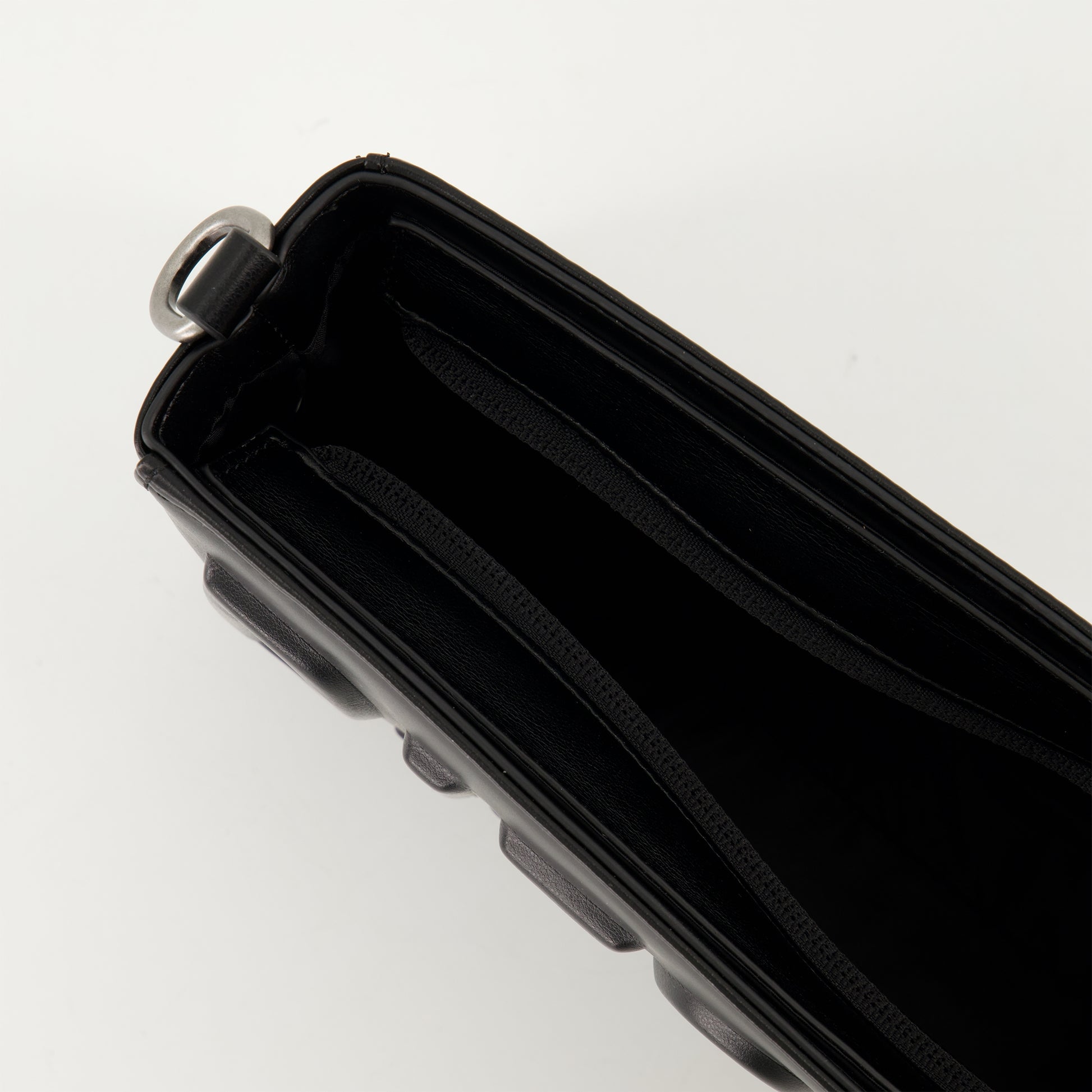 Sac camera 3D Diesel collection Automne-Hiver 2024 pour Femme et Homme. Réalisé en polyuréthane. Article Couleur noir. Bandoulière ajustable et amovible.