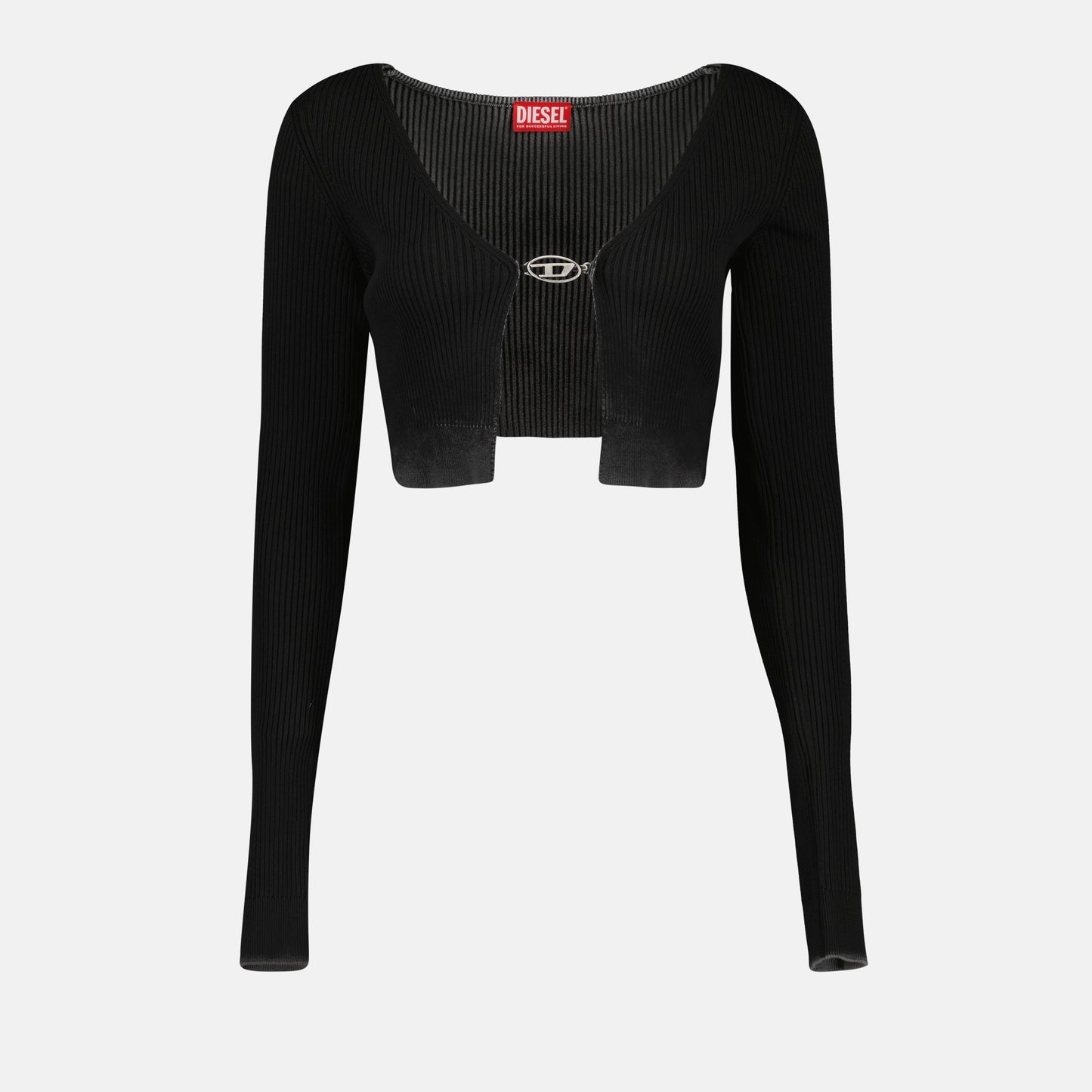 Top cardigan M-Latina Diesel collection Automne-Hiver 2024 pour Femme. Réalisé en maille côtelé. Article de couleur Noir. Col en V et Manches longues. Cet article est disponible en plusieurs déclinaisons.