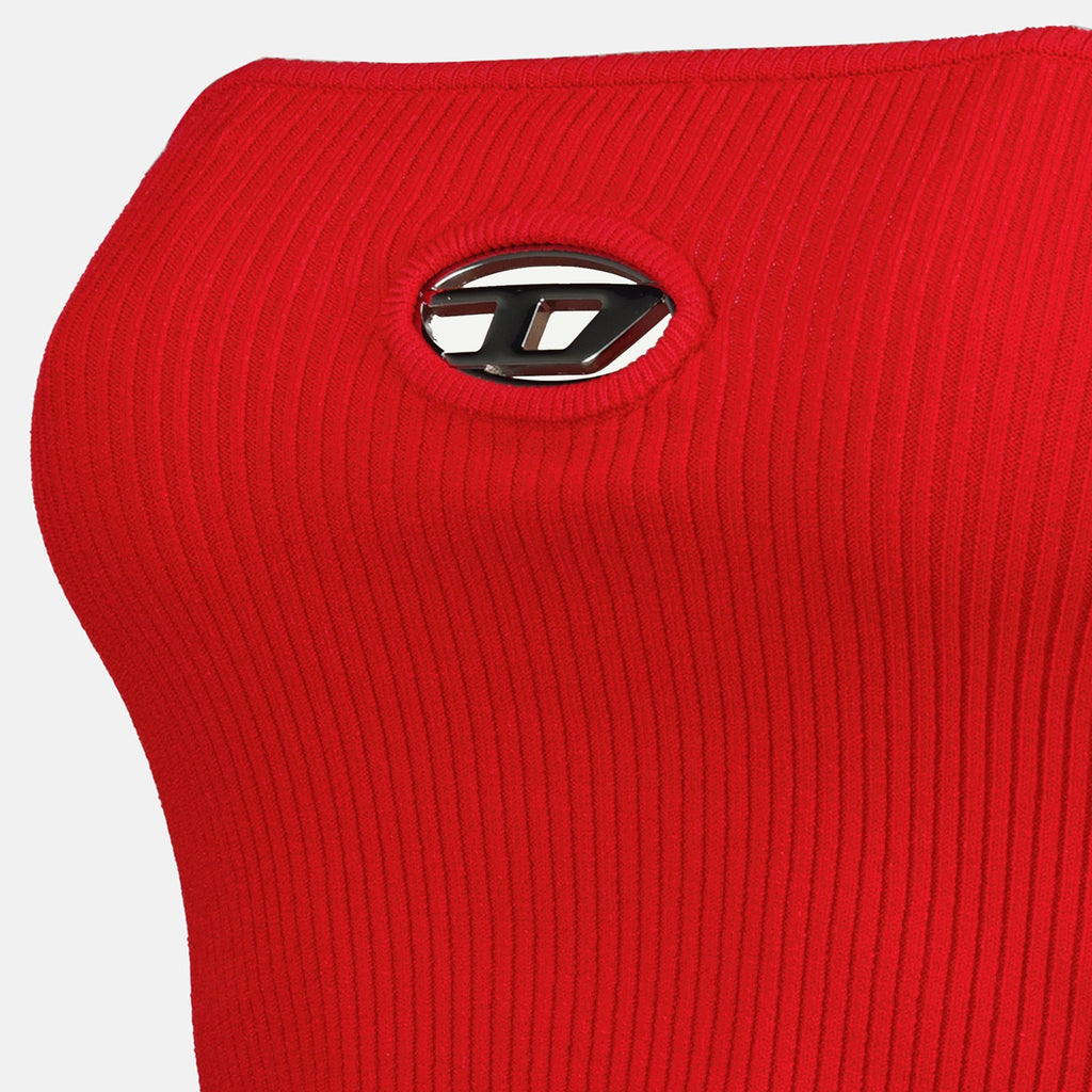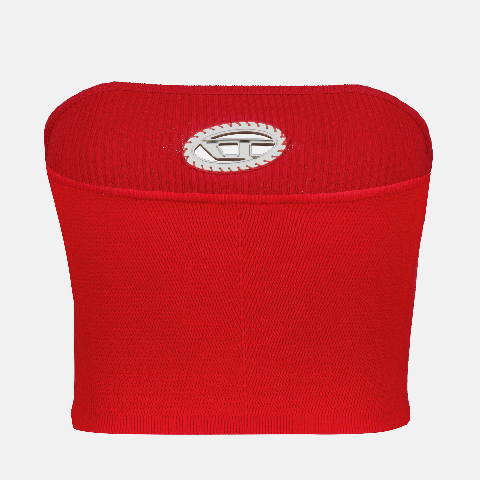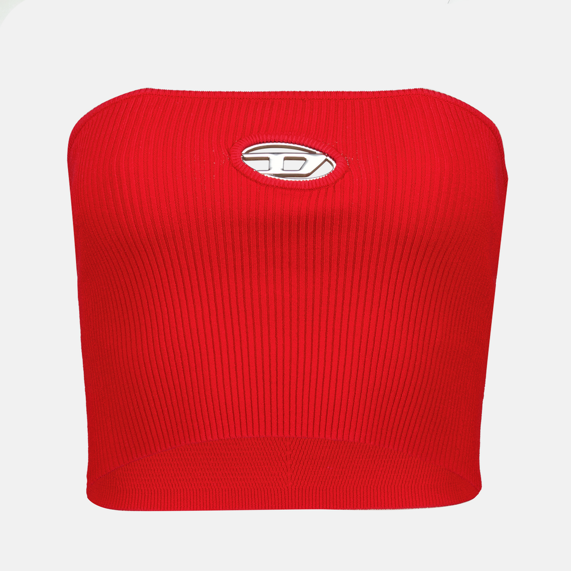 Top M-Clarksvillex red from the brand Diesel, designed for women. This model is part of the Spring-Summer 2025 collection and features a crop cut and a sleeveless design.
