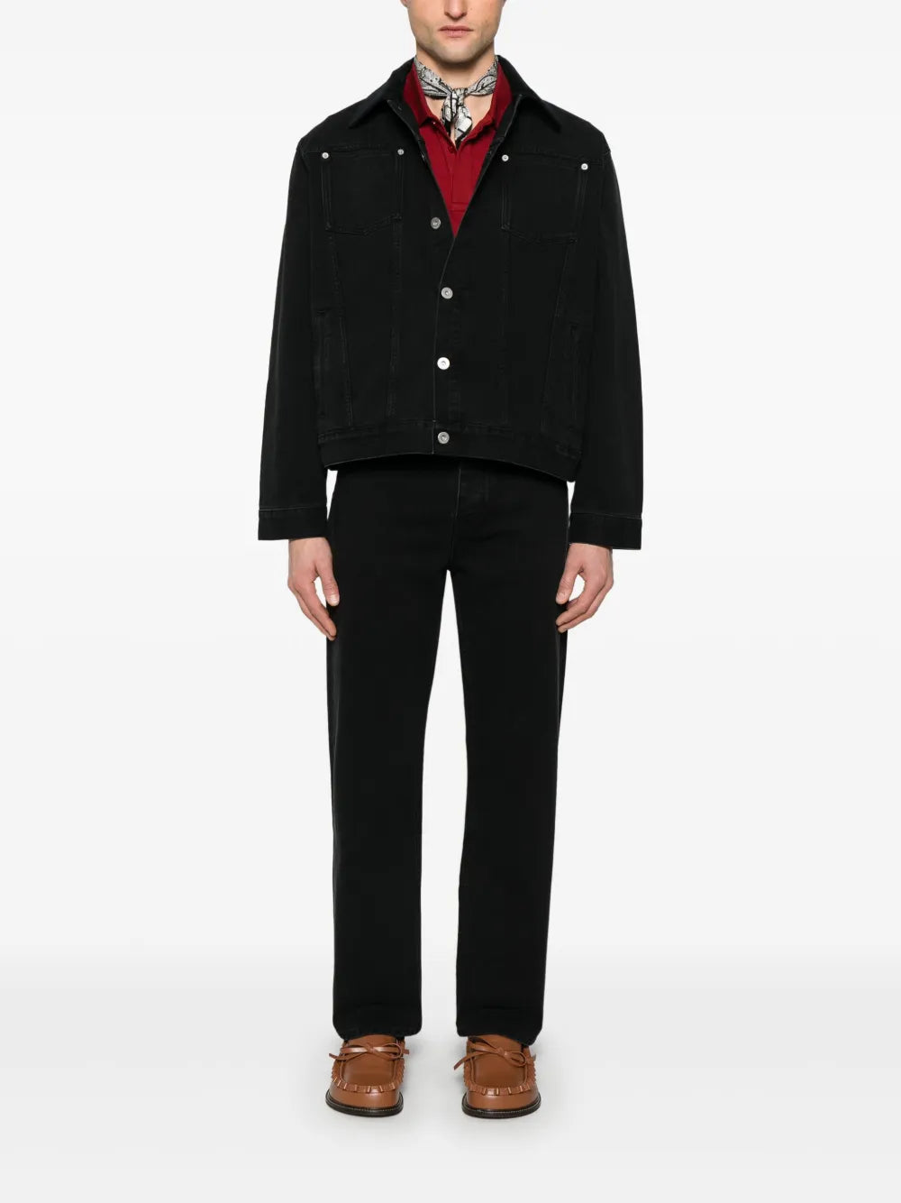 Black denim jeans from the brand Drole De Monsieur, designed for men. This model is part of the Spring-Summer 2025 collection and features a straight cut with refined details.