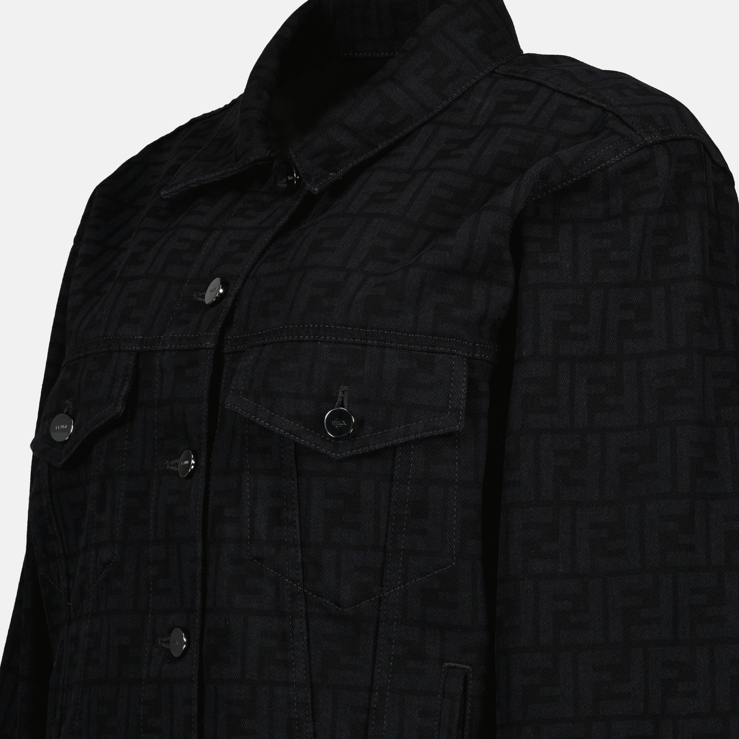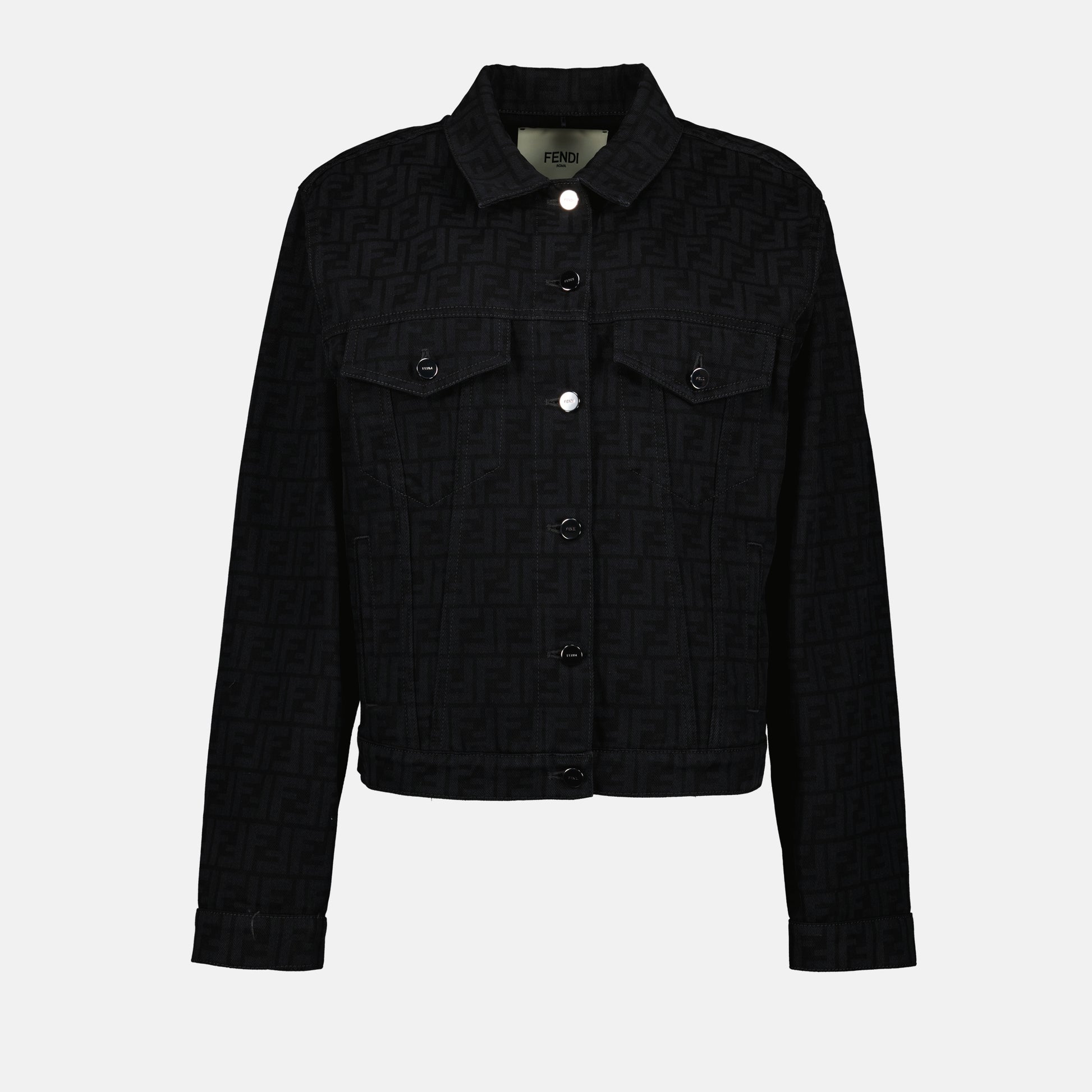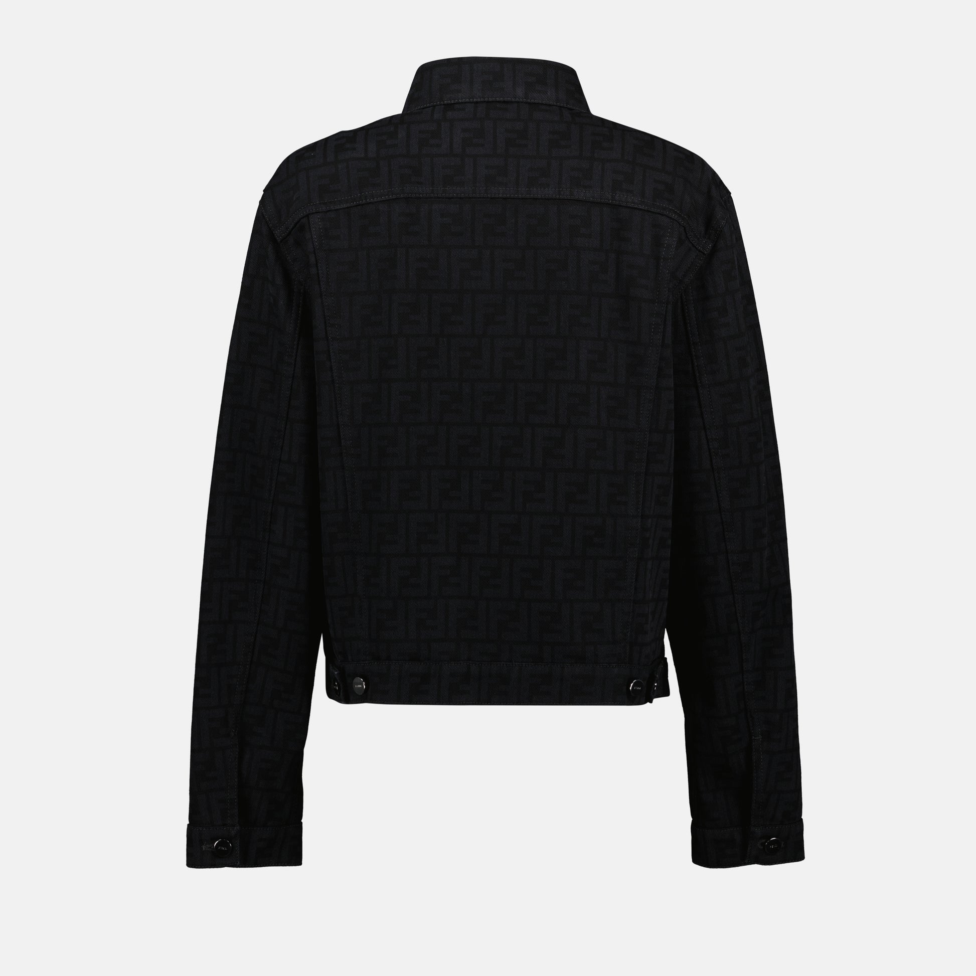 Veste en denim noir FF de Fendi pour femme, réalisée en coton et élasthanne. Cette pièce fait partie de la collection Automne-Hiver 2024 et présente des détails raffinés.