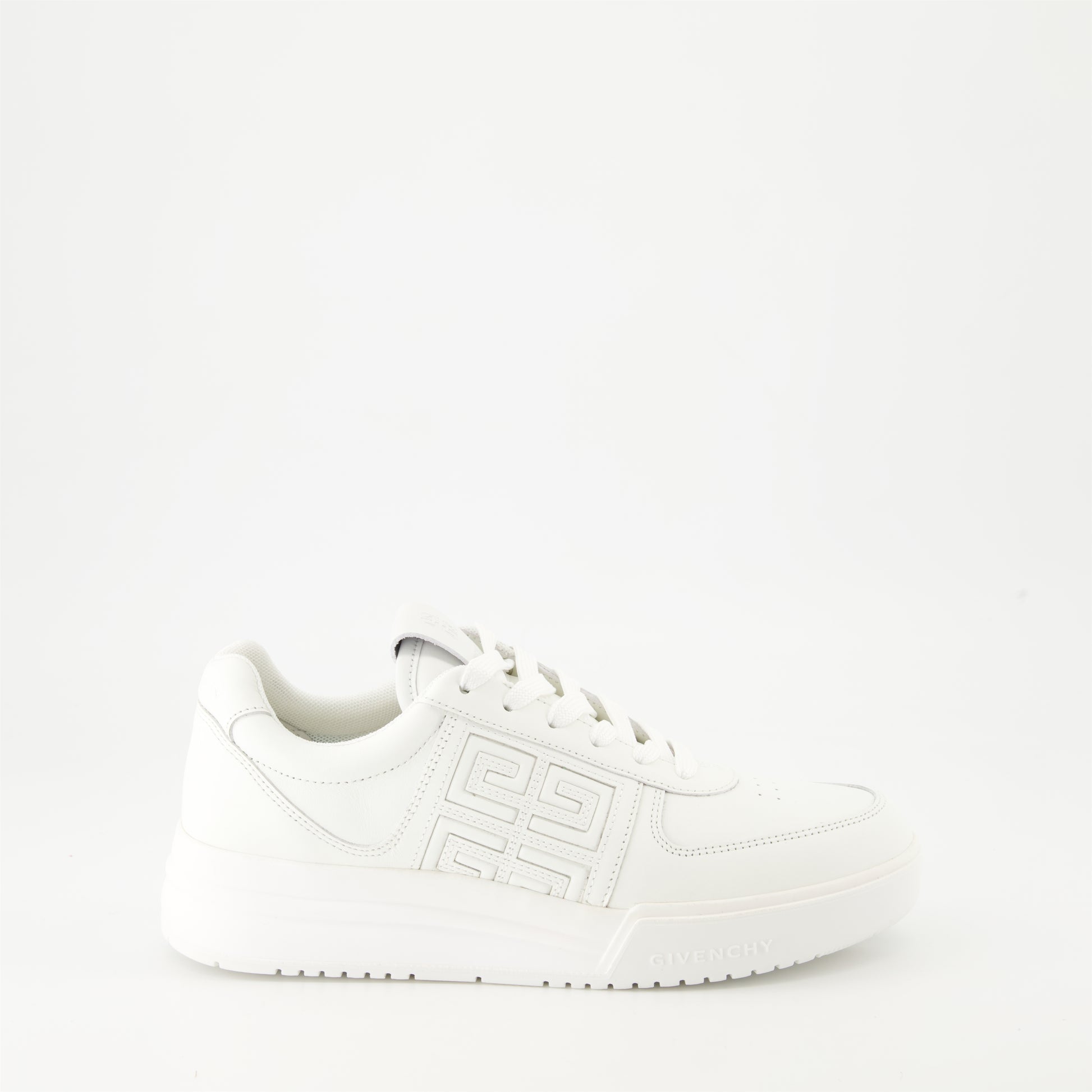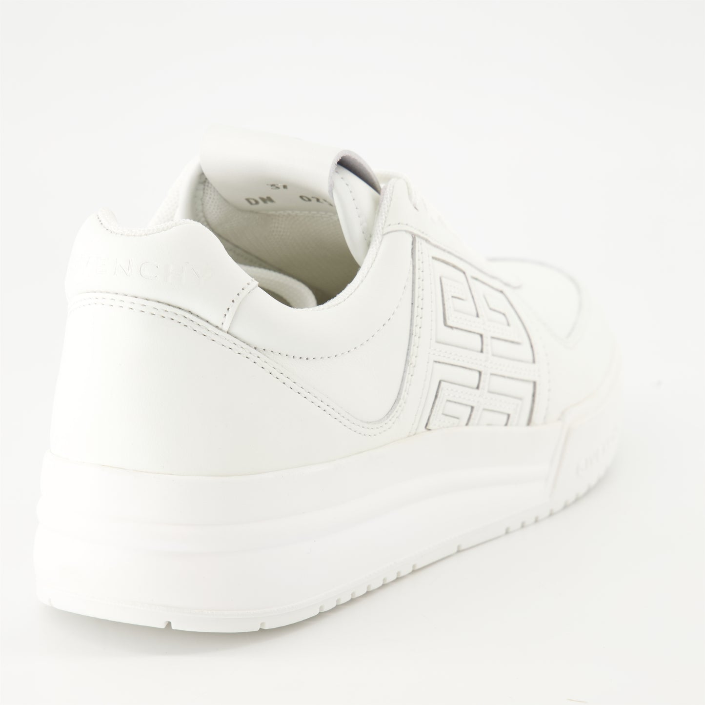 G4 Sneakers from the Givenchy Autumn-Winter 2024 collection for women. Made of smooth leather. Solid white color. Round toe and rubber outsole. This item is available in several variations.