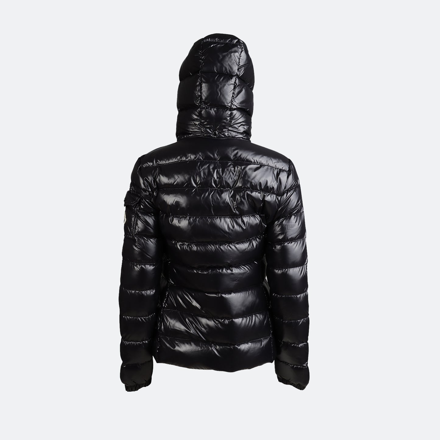 Doudoune Bady Moncler collection Automne-Hiver 2024 pour Femme. Réalisé en nylon brillant. Article Couleur unie noir. Col montant et Manches longues.