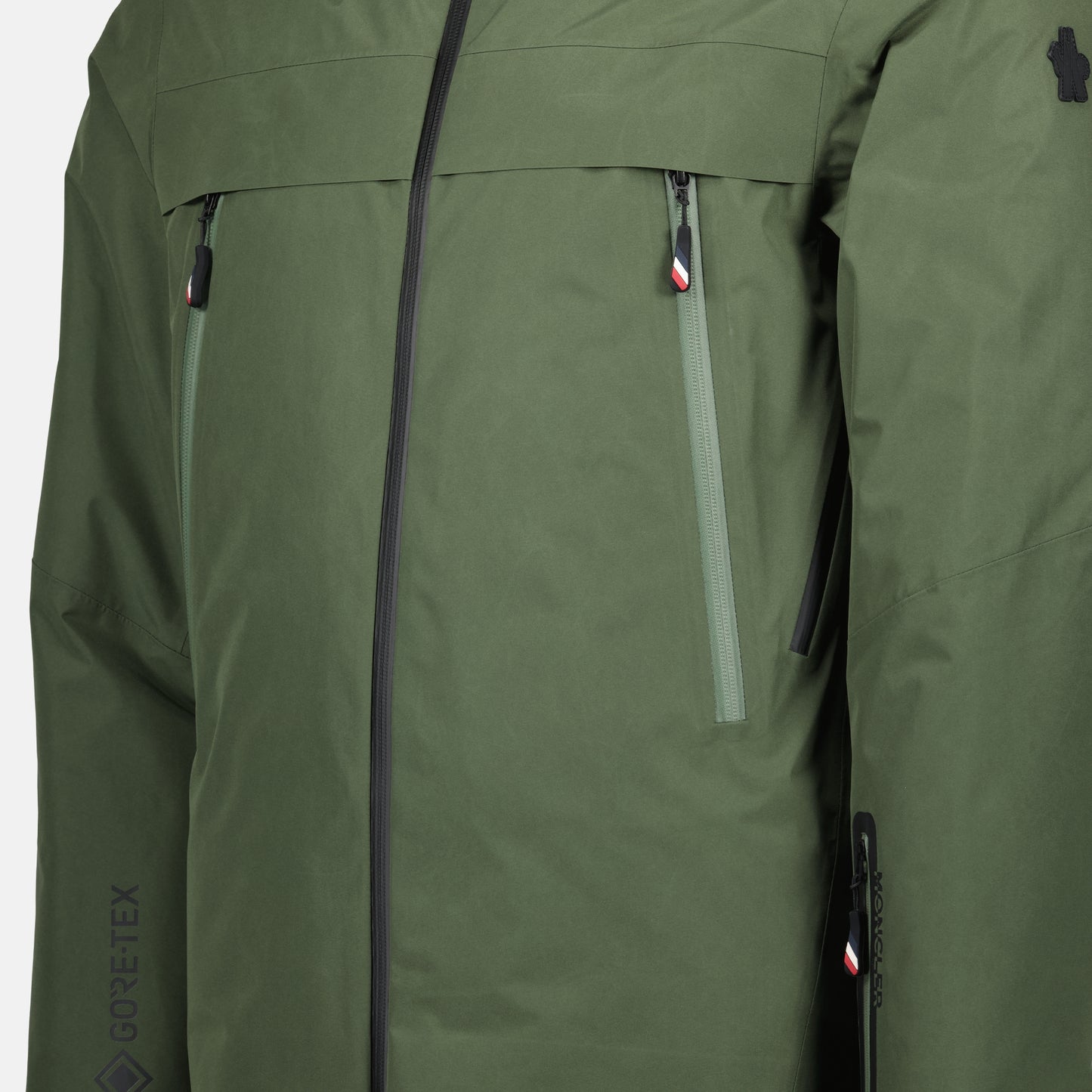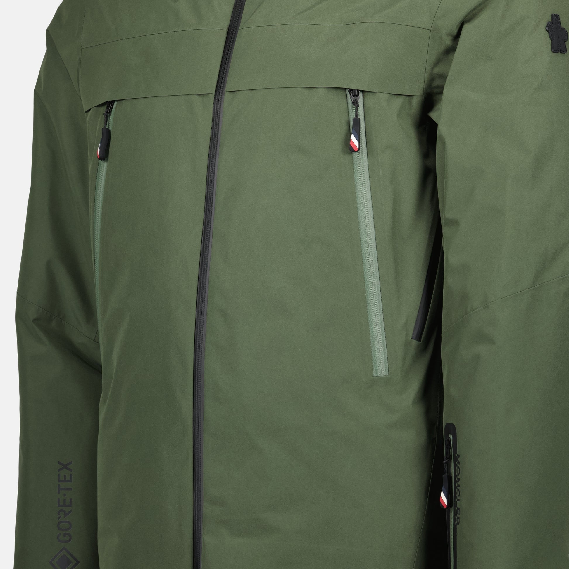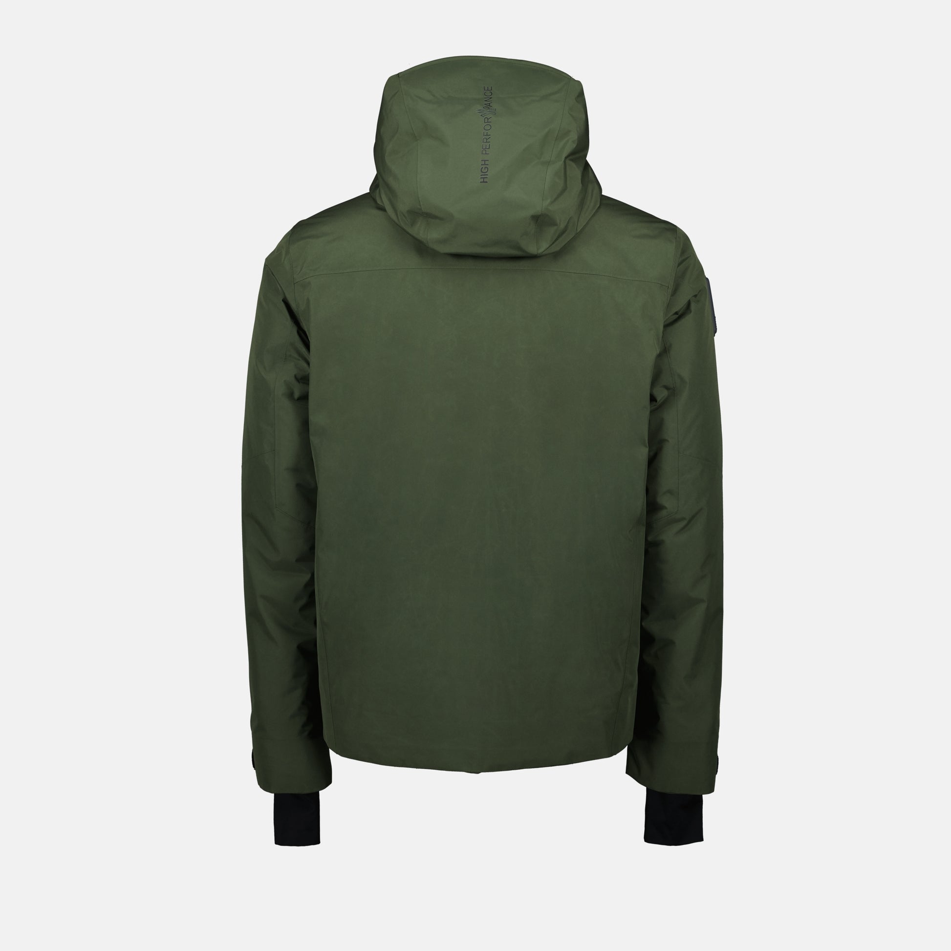 Balmhorn jacket in green nylon from Moncler Grenoble for men, combining comfort and style. This piece is part of the Fall-Winter 2024 collection with tricolor details and an adjustable hood.