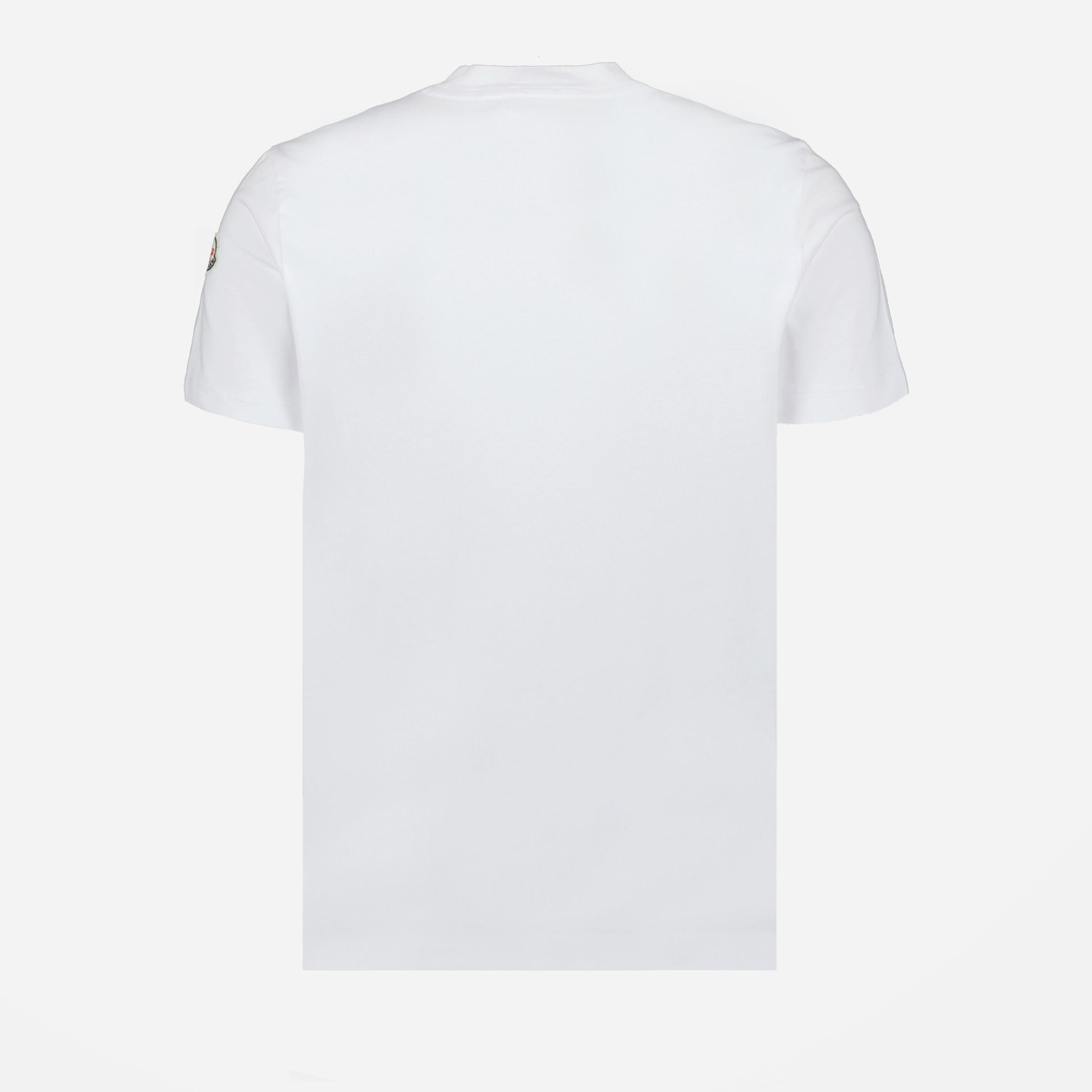 T-shirt blanc à logo de Moncler, conçu pour homme, allie confort et style. Faisant partie de la collection Automne-Hiver 2024, il présente un logo en feutrine sur le devant.