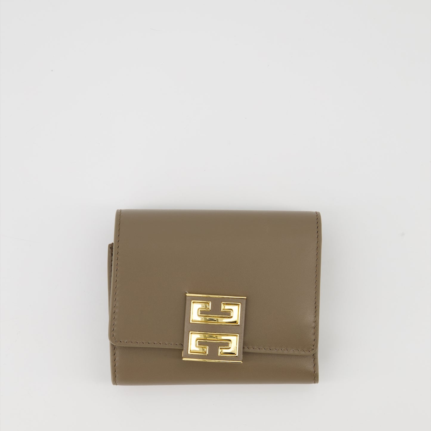 Portefeuille 4G Givenchy collection Printemps-Été 2024 pour Femme. Réalisé en cuir lisse. Article de couleur Marron. Rabat à bouton pression.