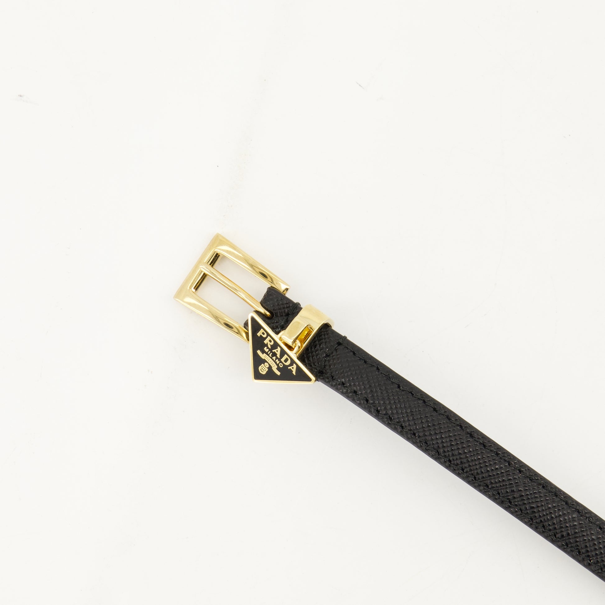 Bracelet Saffiano Prada collection Automne-Hiver 2024 pour Femme. Réalisé en cuir Saffiano. Article Couleur noir..