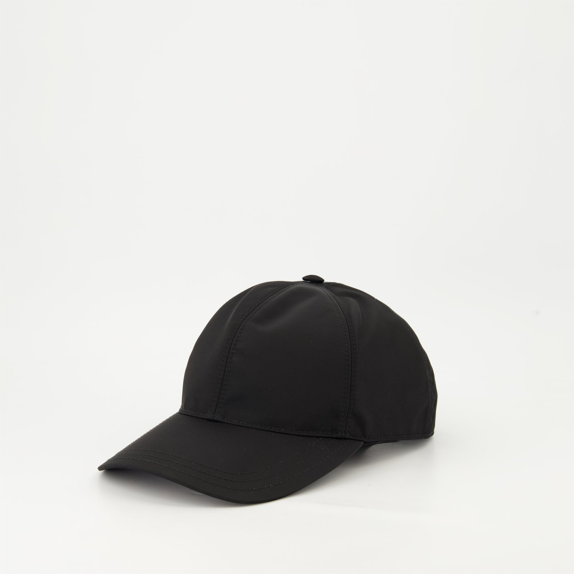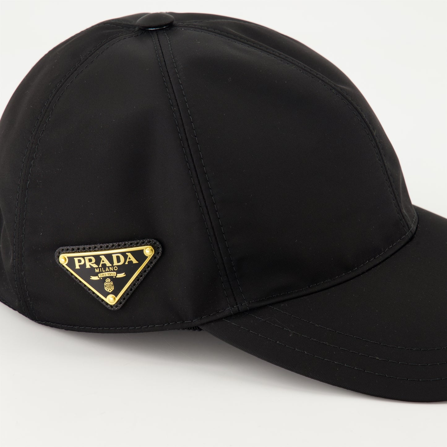 Casquette en Re-Nylon Prada collection Automne-Hiver 2024 pour Femme. Réalisé en nylon recyclé. Article Couleur unie noir.