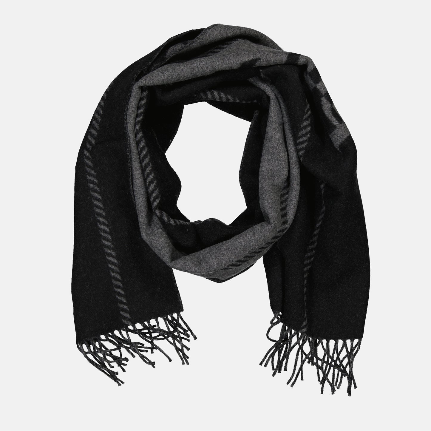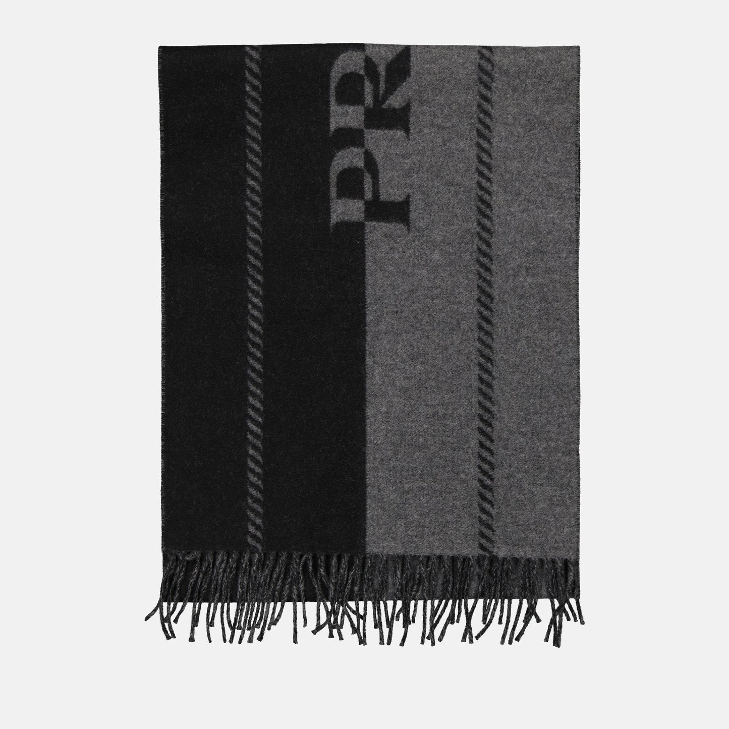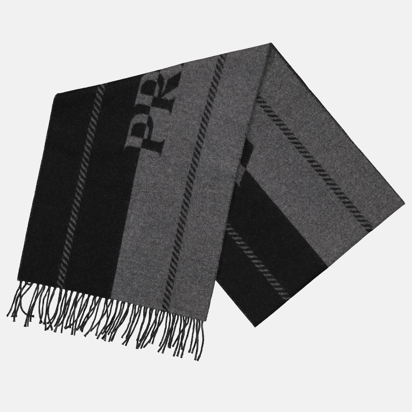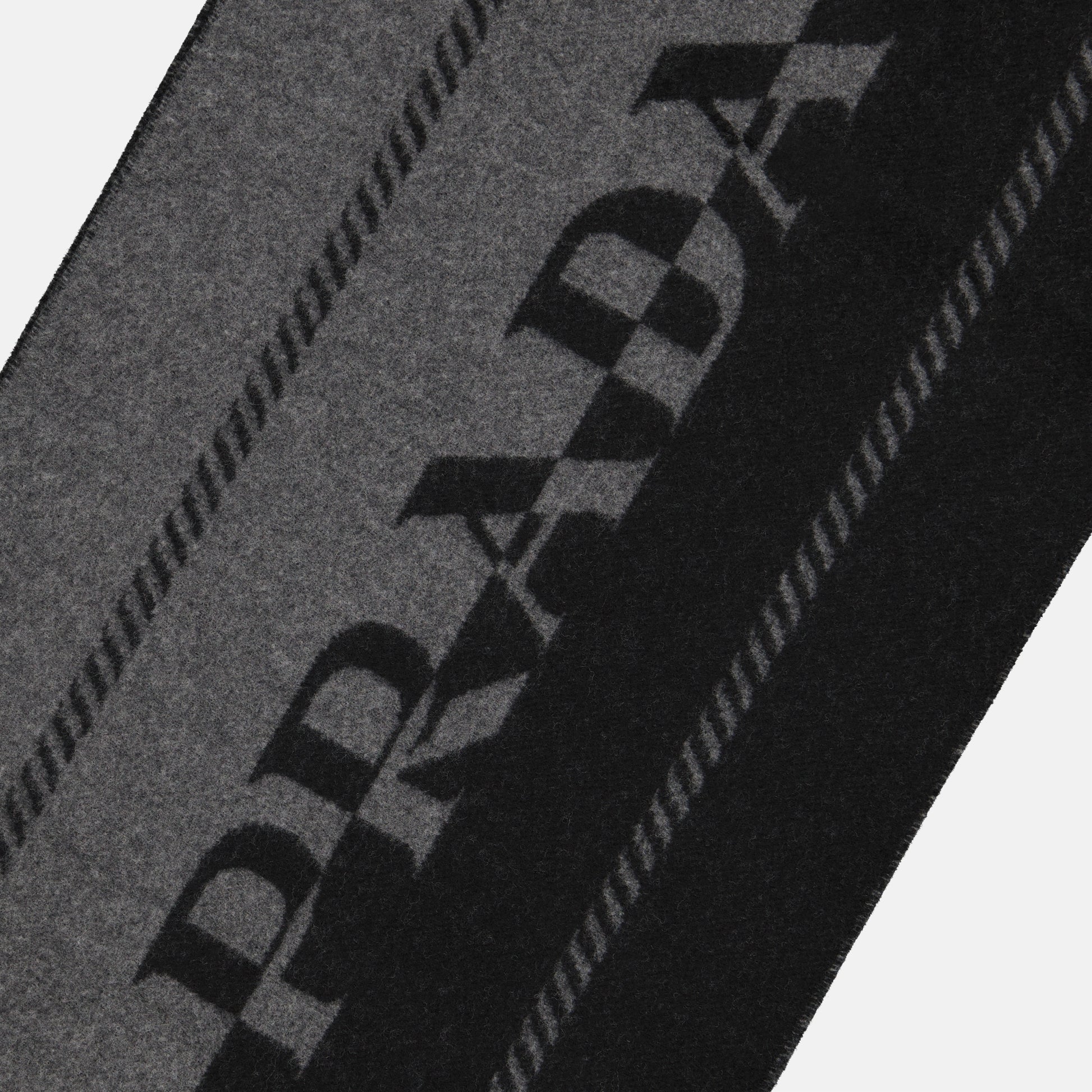 Écharpe en laine noir et gris Prada collection Automne-Hiver 2024 pour Homme. Réalisé en laine. Article Design bicolore.