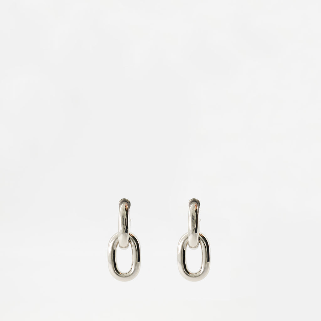 The silver Link XL earrings from Rabanne are designed for women. They are part of the Spring-Summer 2025 collection and are made of brass with a butterfly clasp.