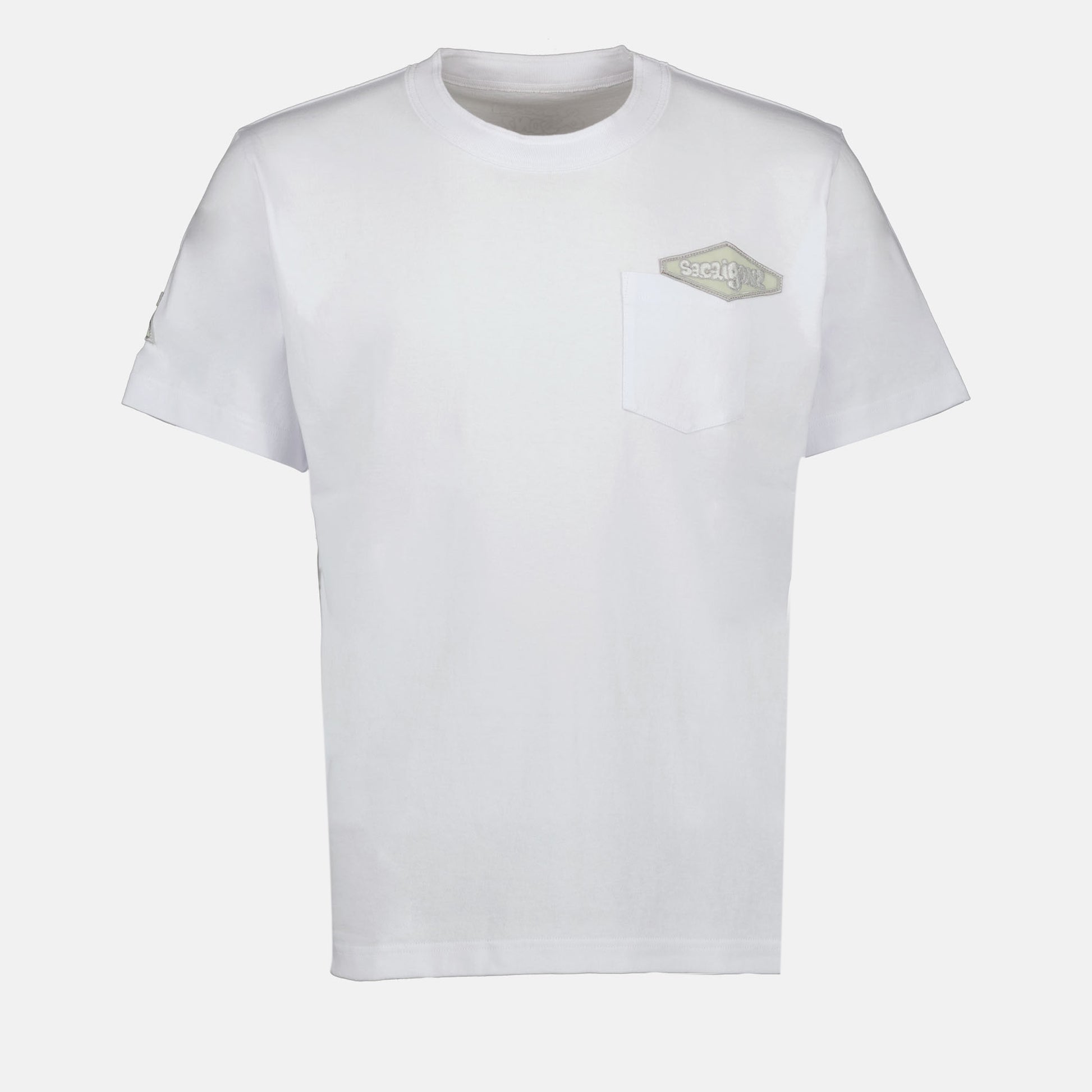 Logo T-shirt from the Sacai Fall-Winter 2024 collection for Men. Made of cotton. Item Color khaki green. Round neck and short sleeves. This item is available in several variants.