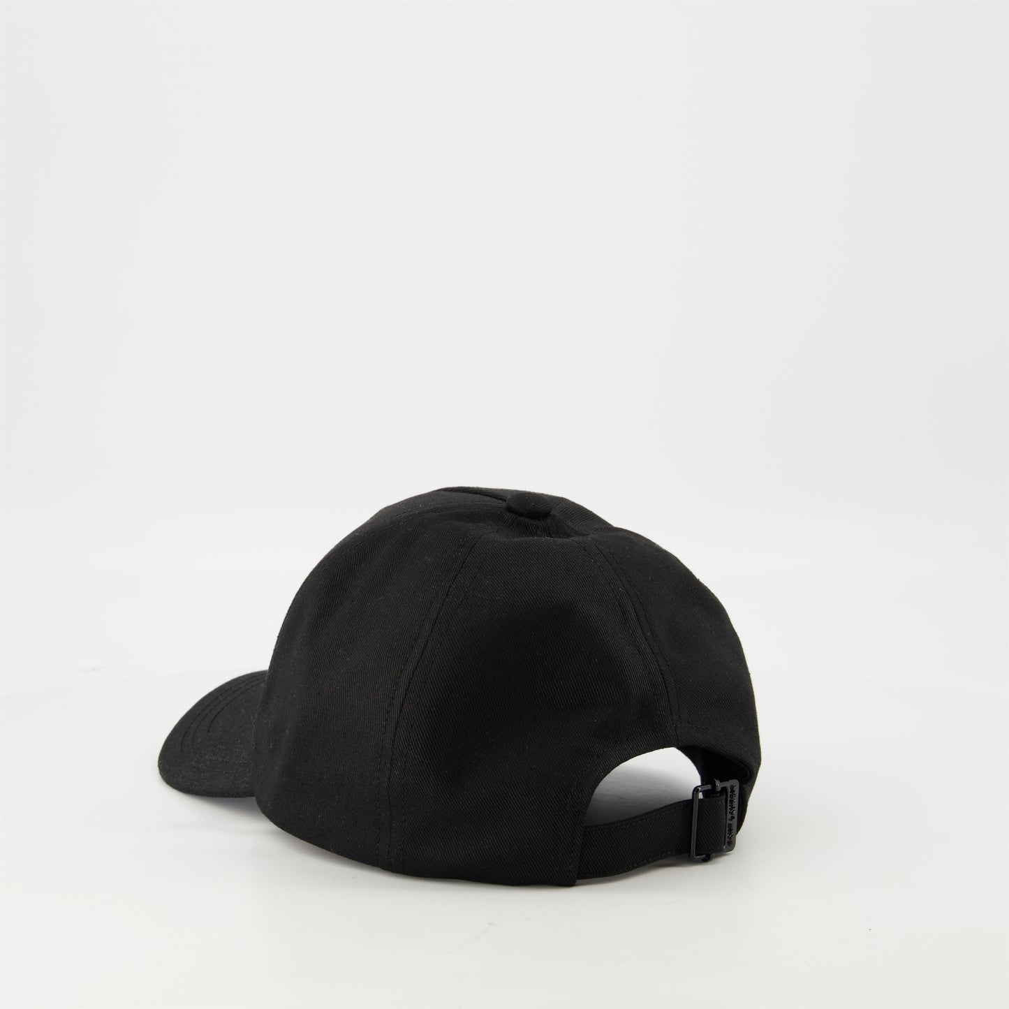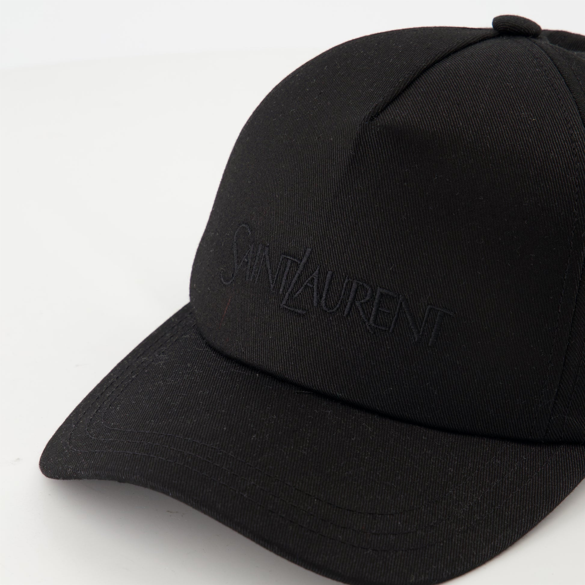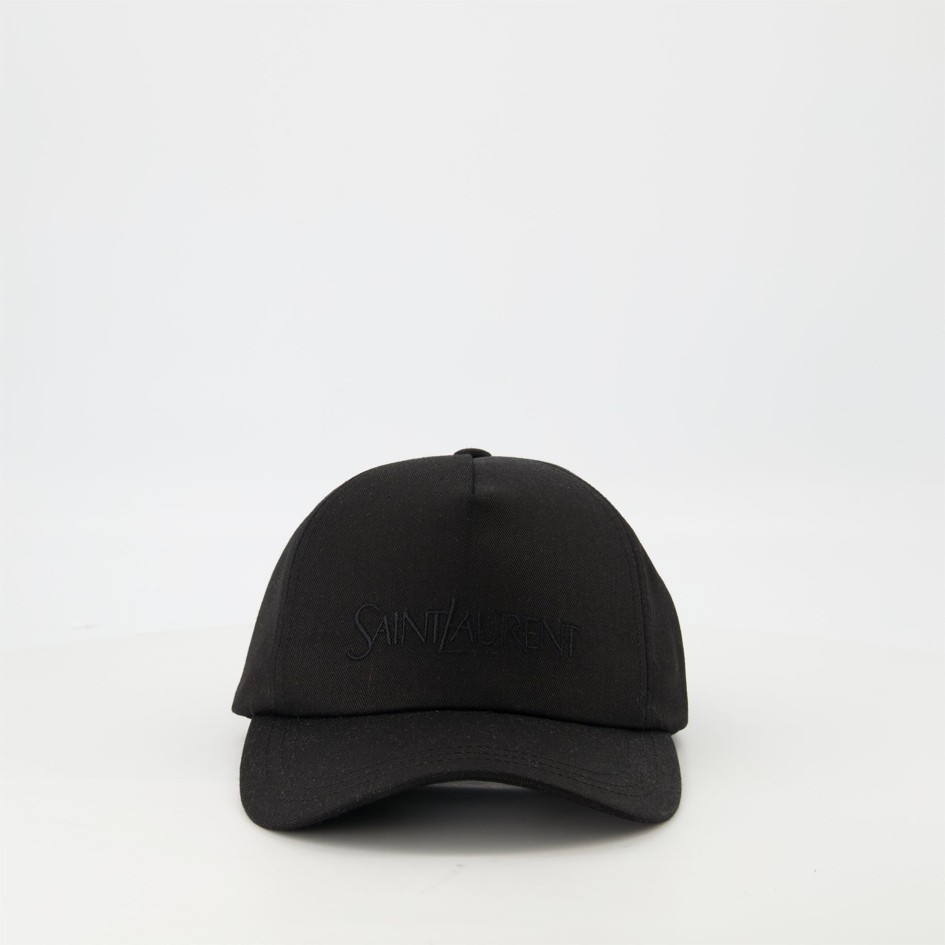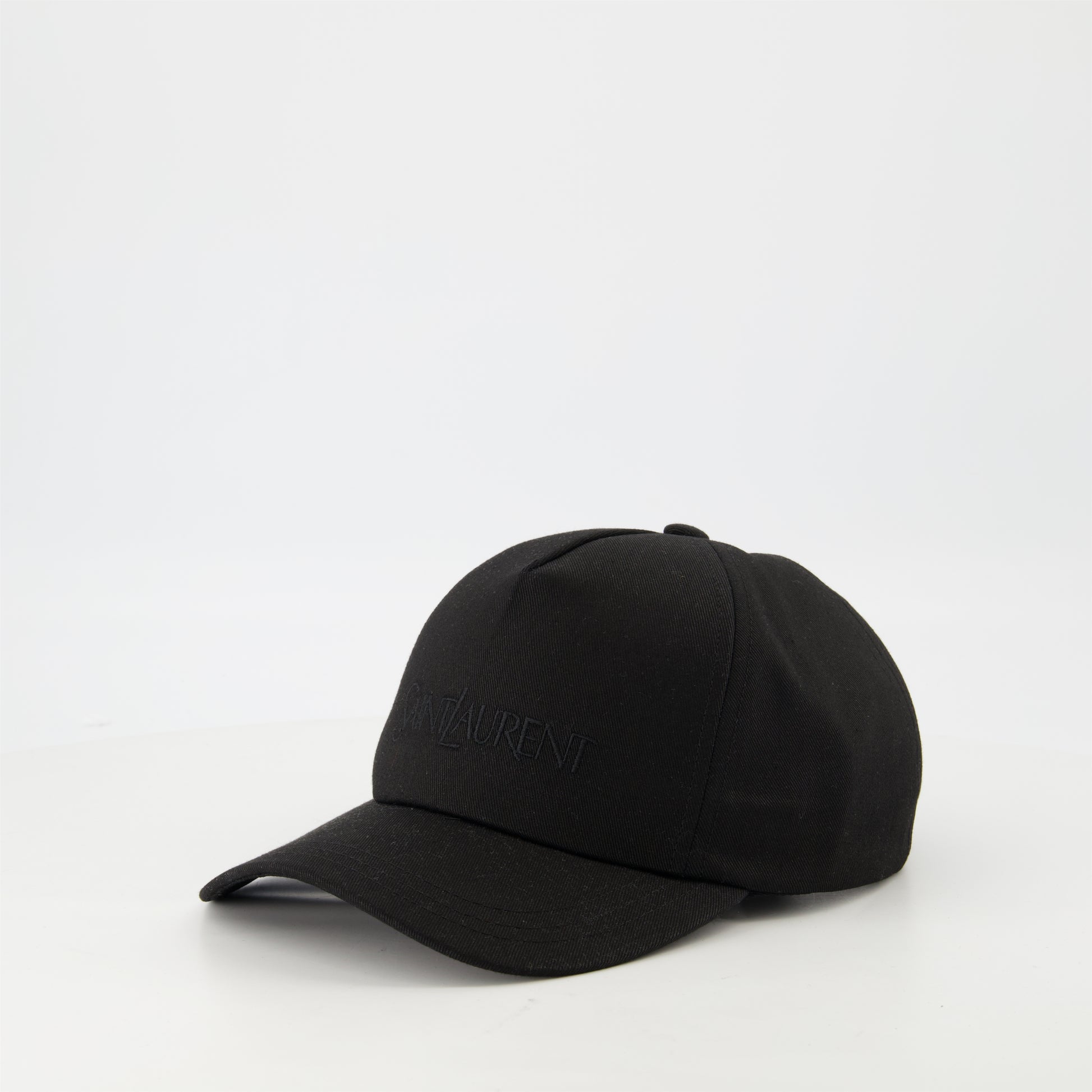 Black embroidered cotton cap from Saint Laurent, designed for men, combines elegance and comfort. Part of the Spring-Summer 2025 collection, it features a tone-on-tone embroidered logo.