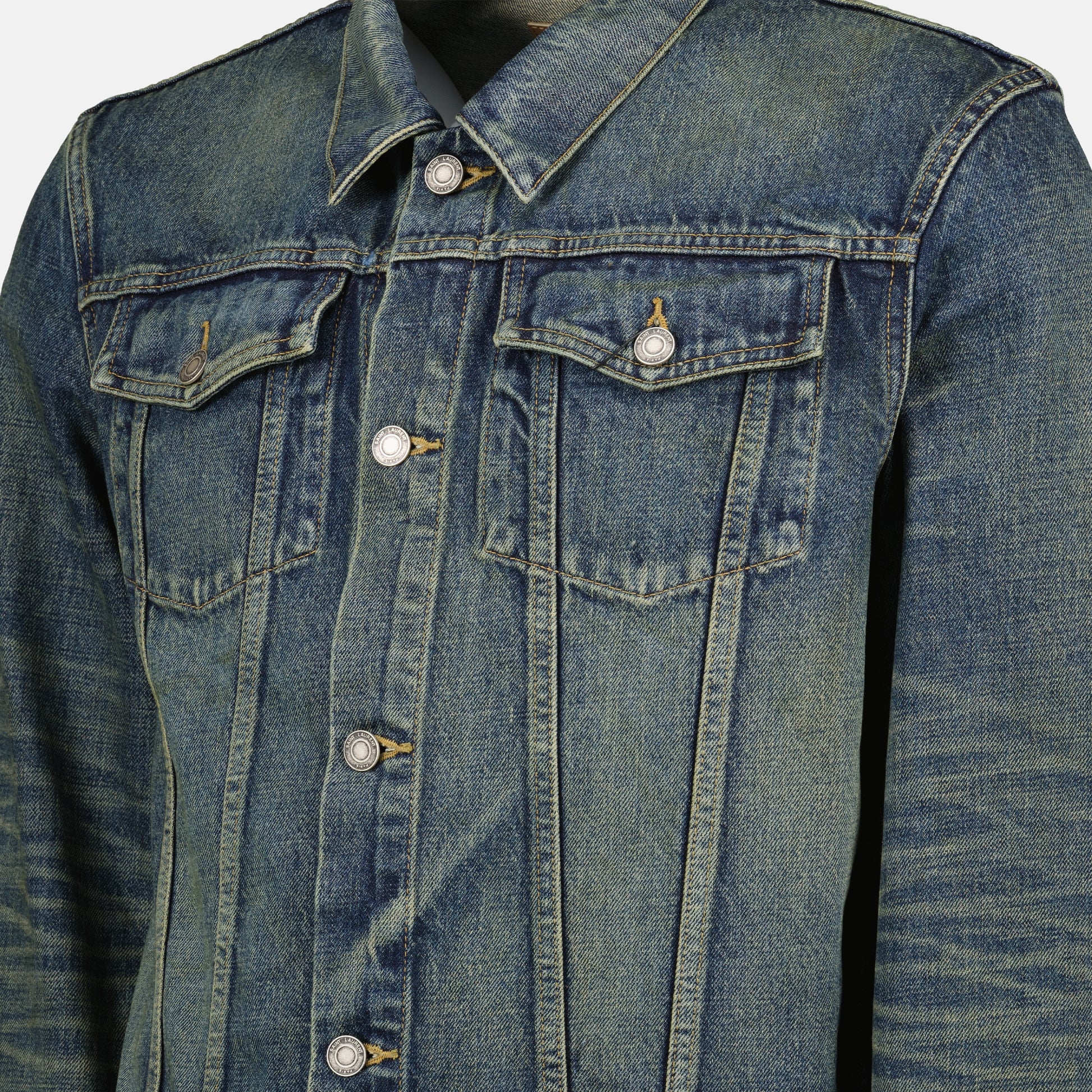 Faded denim jacket by Saint Laurent for men. This piece is part of the Autumn-Winter collection and stands out for its classic style and functional details.