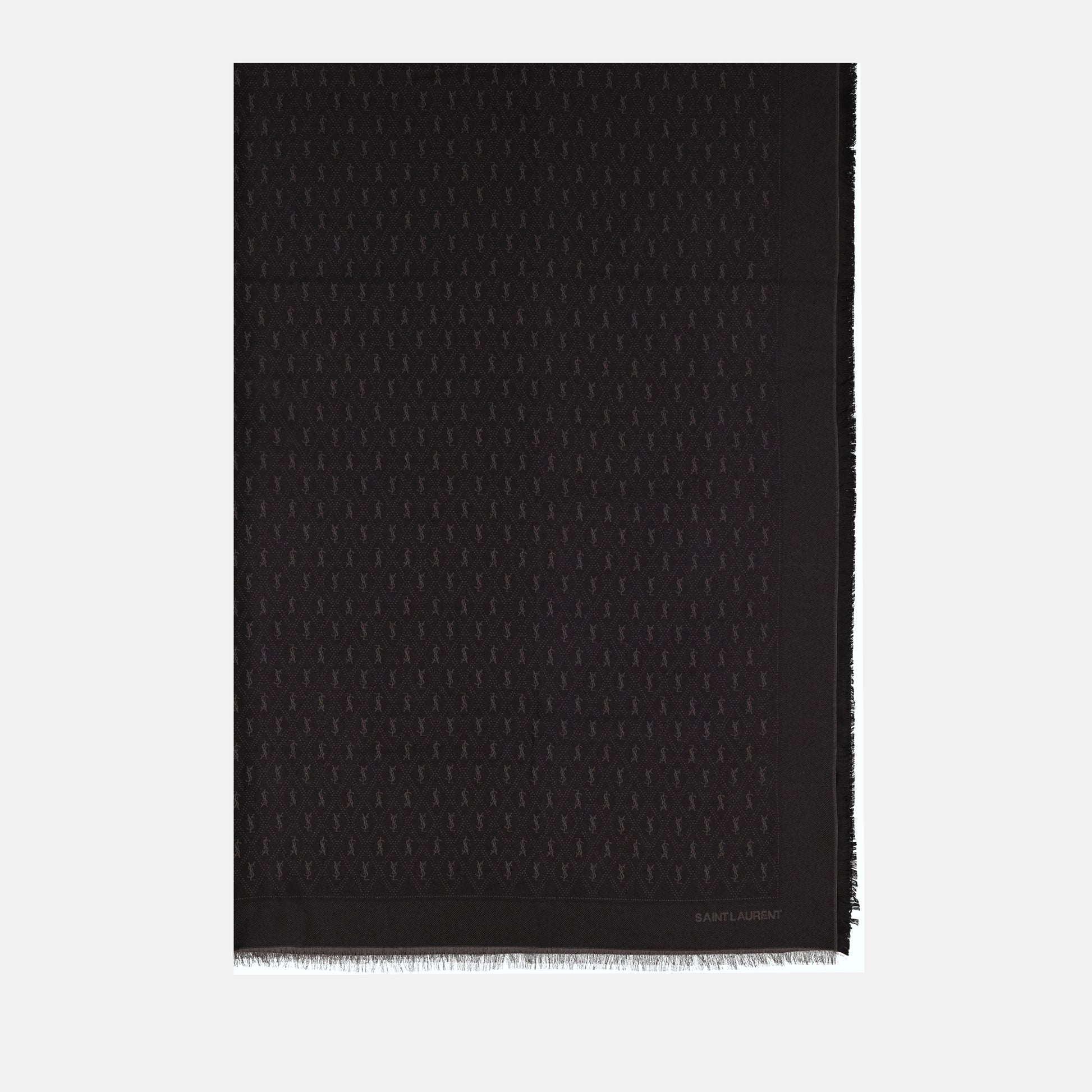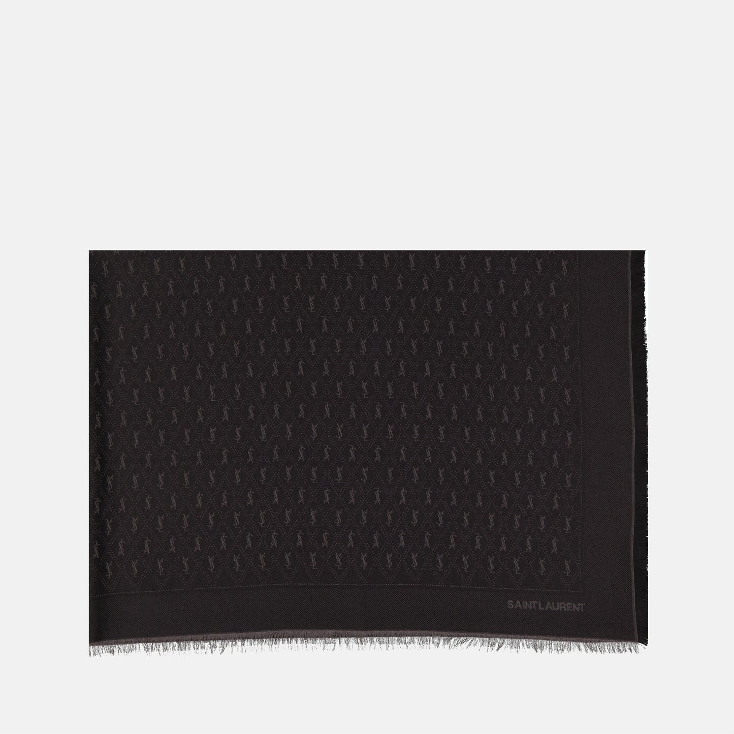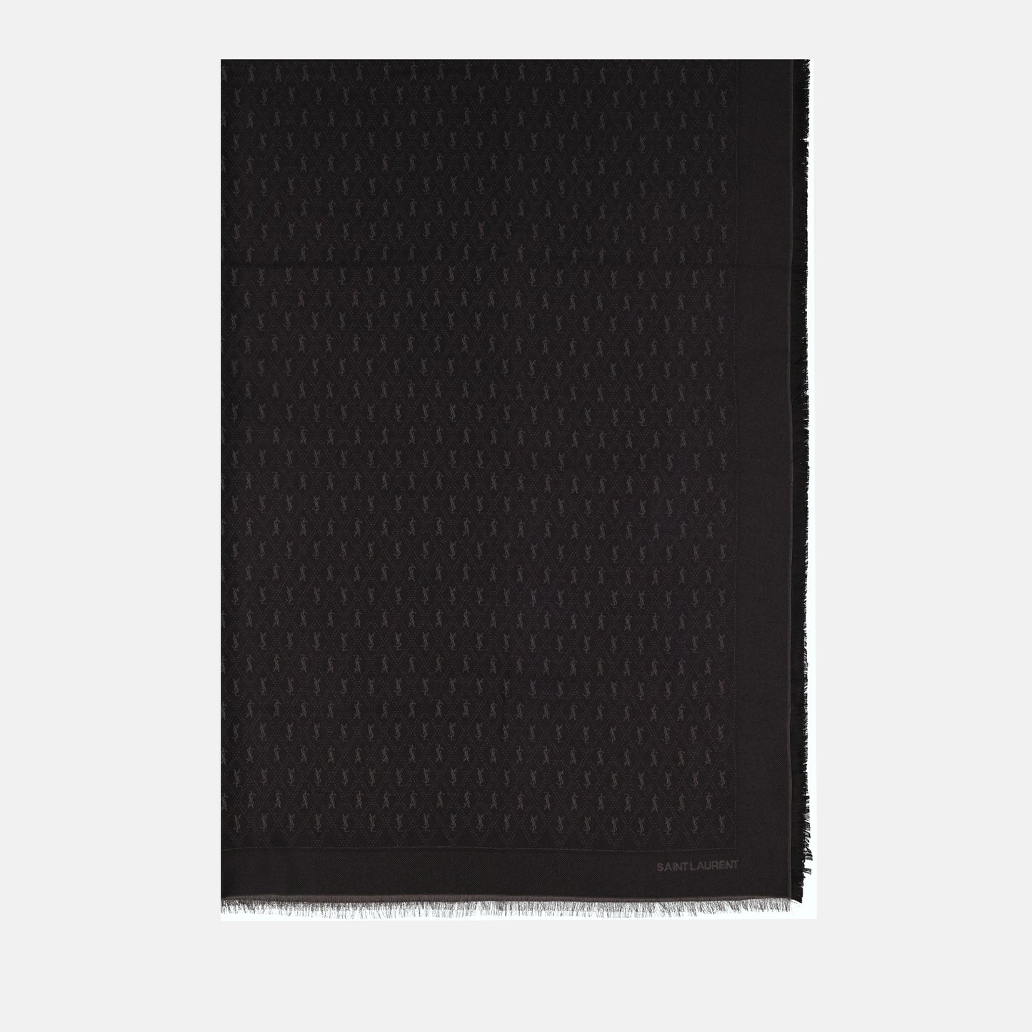 Cassandre Scarf from the Saint Laurent Fall-Winter 2024 collection for Men. Made from wool and silk. Features a monogram logo throughout.