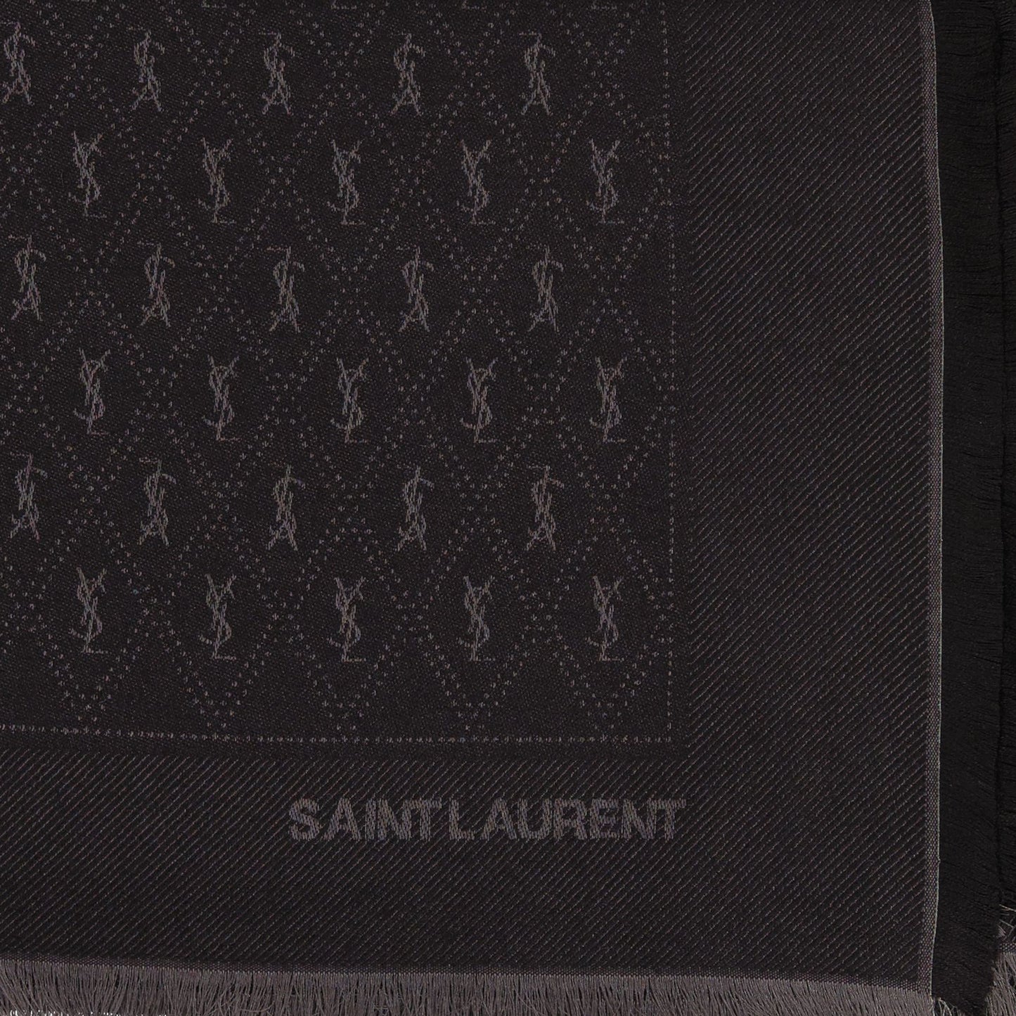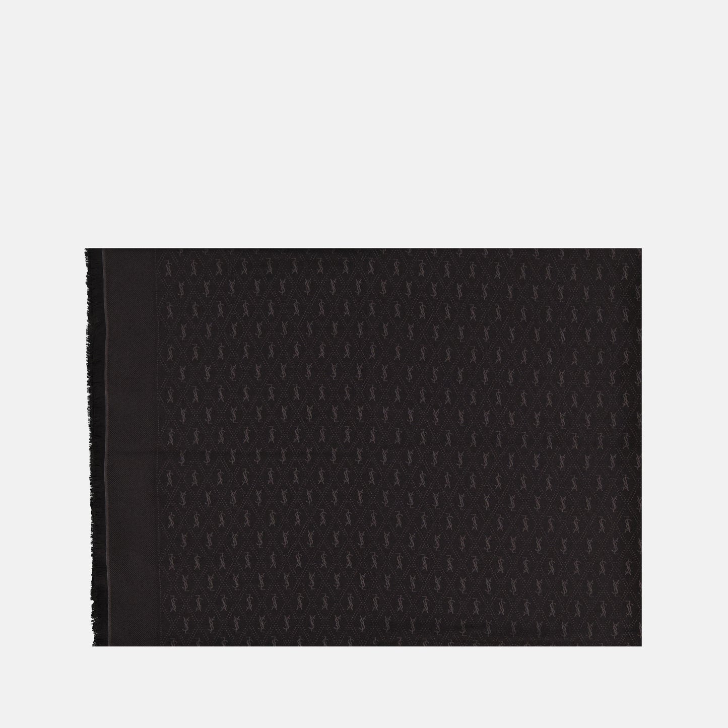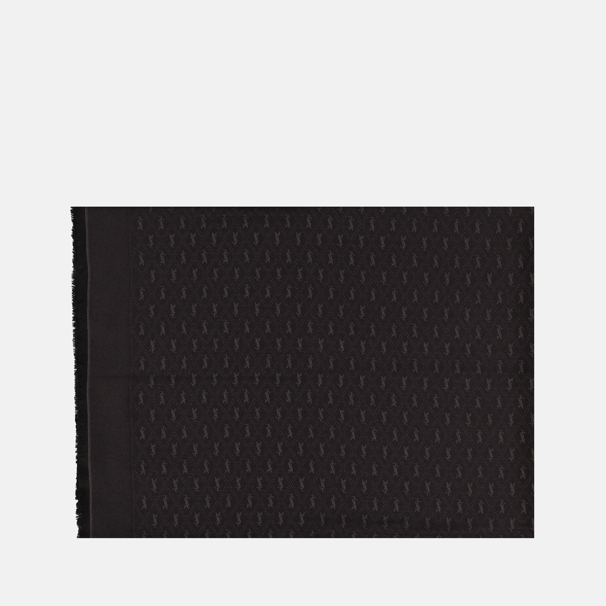 Cassandre Scarf from the Saint Laurent Fall-Winter 2024 collection for Men. Made from wool and silk. Features a monogram logo throughout.