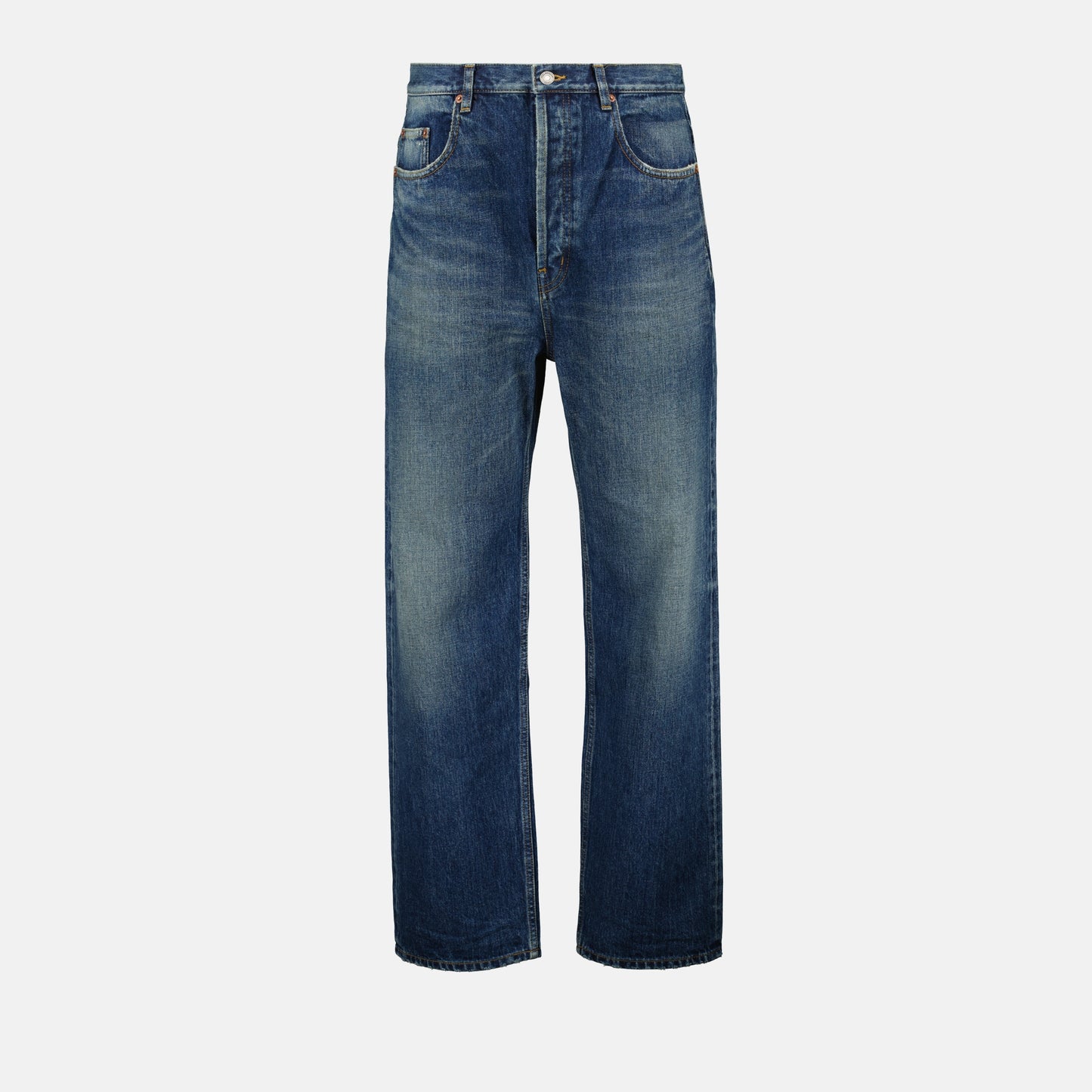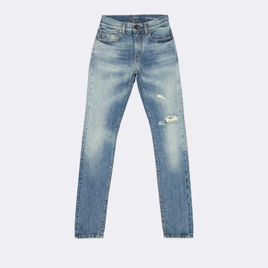 High-waisted denim jeans from Saint Laurent for men. This model is part of the Spring-Summer 2025 collection and features a straight cut with a five-pocket design.