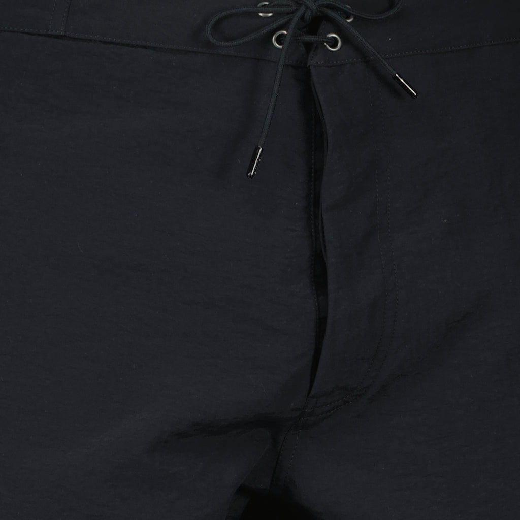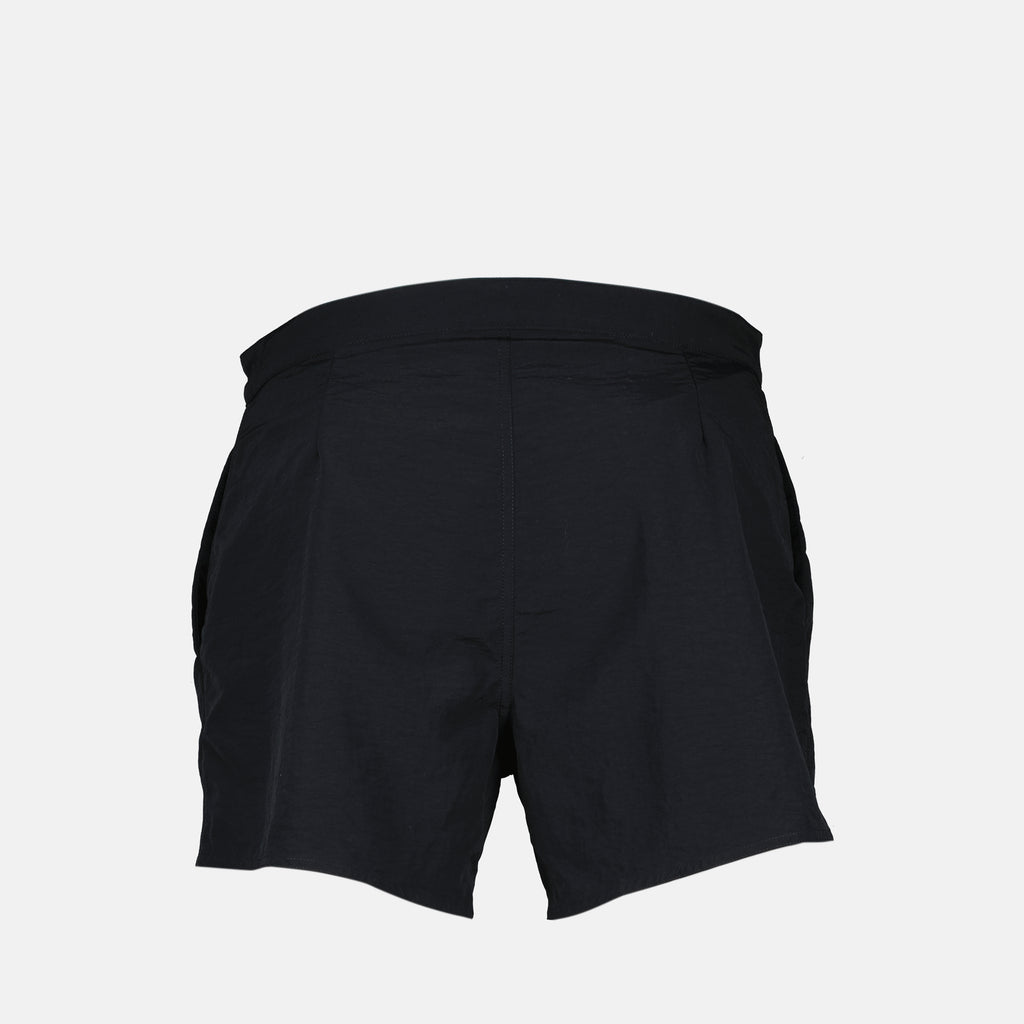 Black swim shorts from Saint Laurent for men, made of nylon with a straight cut and adjustable drawstrings. This piece is part of the Spring-Summer 2025 collection.