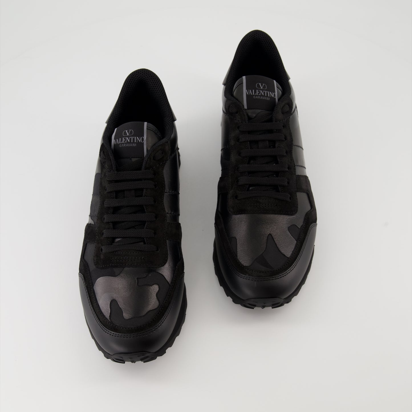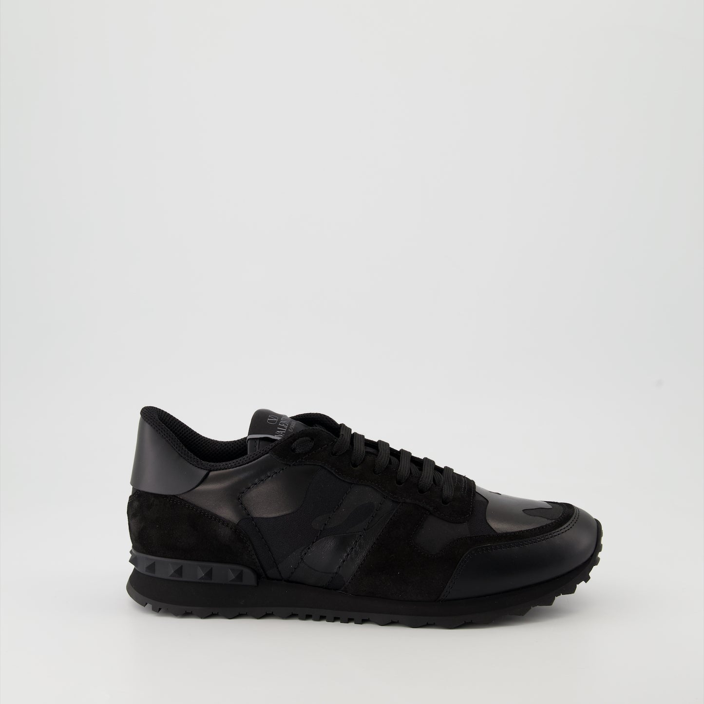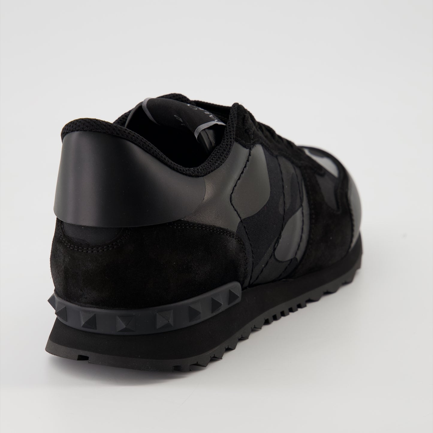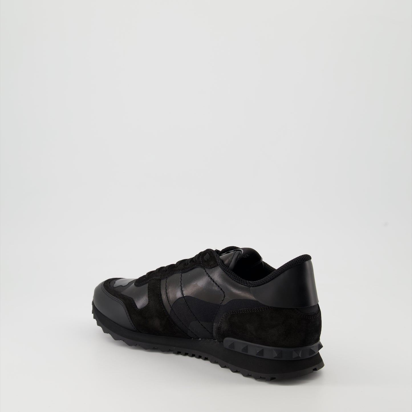 Baskets Rockrunner Valentino Garavani collection Automne-Hiver 2024 pour Homme. Réalisé en cuir et suède. Article de couleur Noir. Bout arrondi et Semelle crantée en gomme.