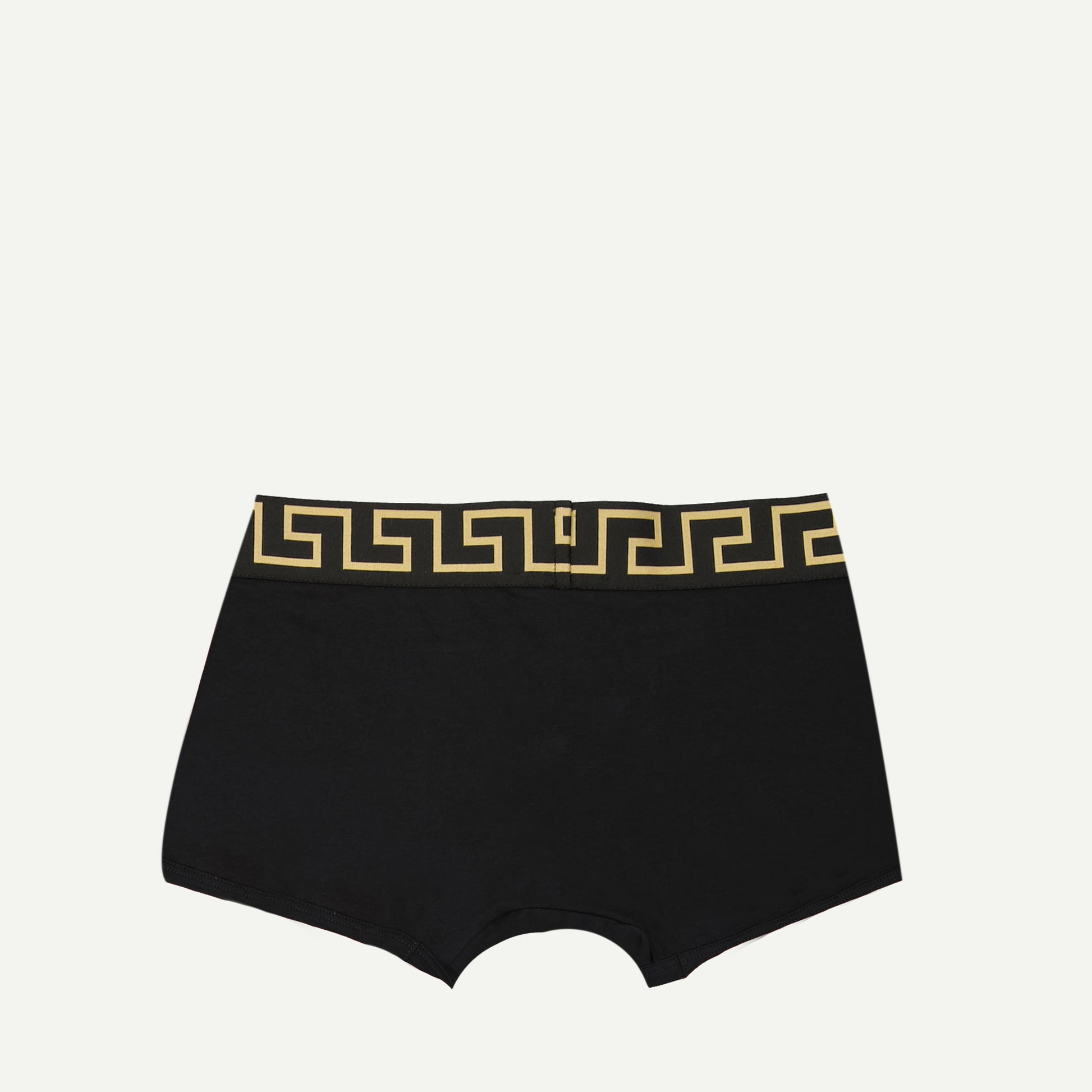 Boxer court Medusa Greca Versace collection Automne-Hiver 2024 pour Homme. Réalisé en coton et élasthanne. Article Couleur unie noir. Cet article est disponible en plusieurs déclinaisons.