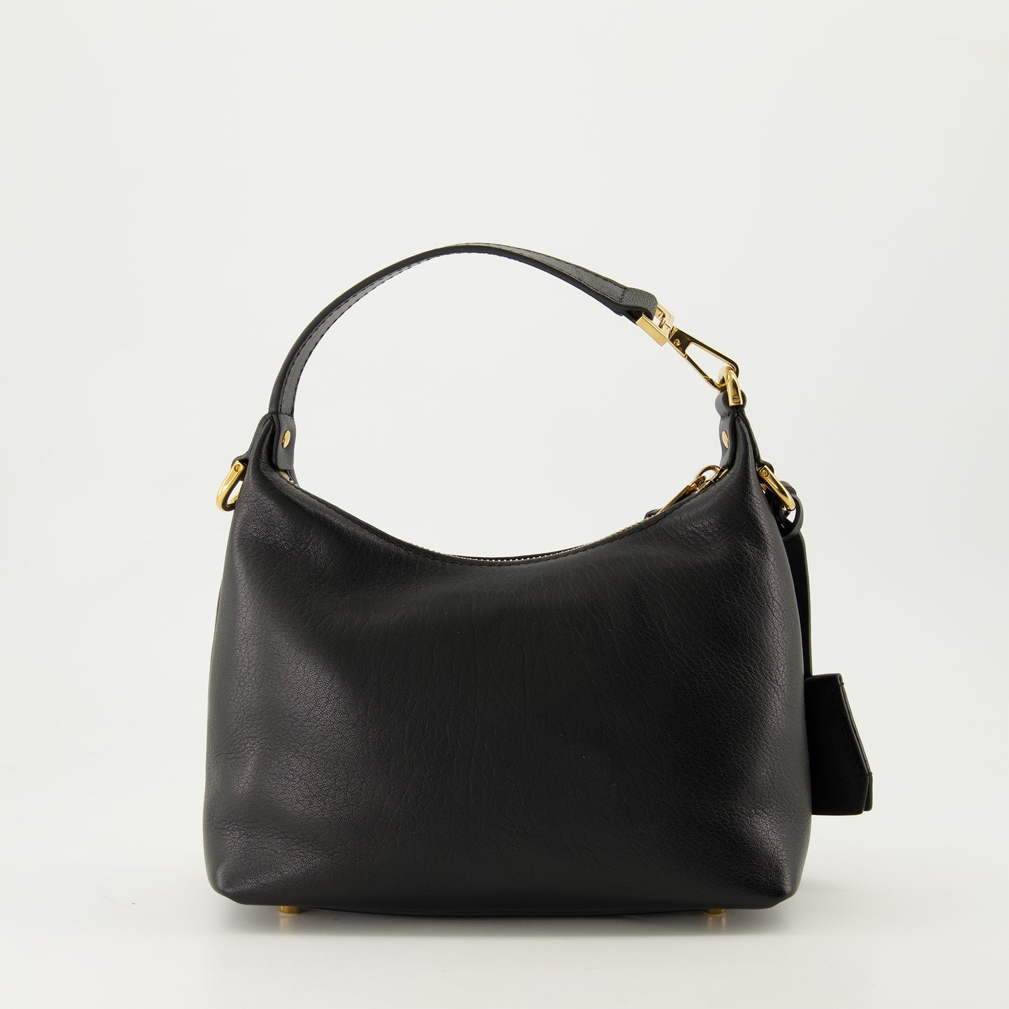 The black leather hobo bag from Versace embodies modern elegance and artisanal craftsmanship. Made from smooth lambskin, it stands out with its luxurious texture and durability. This model, designed for the Spring-Summer 2025 collection, is suitable for both casual occasions and more formal events. Its zip closure ensures the security of your personal belongings, while the adjustable and removable shoulder strap offers unmatched versatility. The fixed handle also allows for hand carrying, adding a sophisticated touch. The metal Lettering logo and Medusa metal finishes reflect the attention to detail. Additionally, the removable keychain provides extra functionality. This hobo bag is the perfect choice for the modern woman seeking both style and practicality in her everyday life. Its timeless black color makes it an essential accessory in any wardrobe.