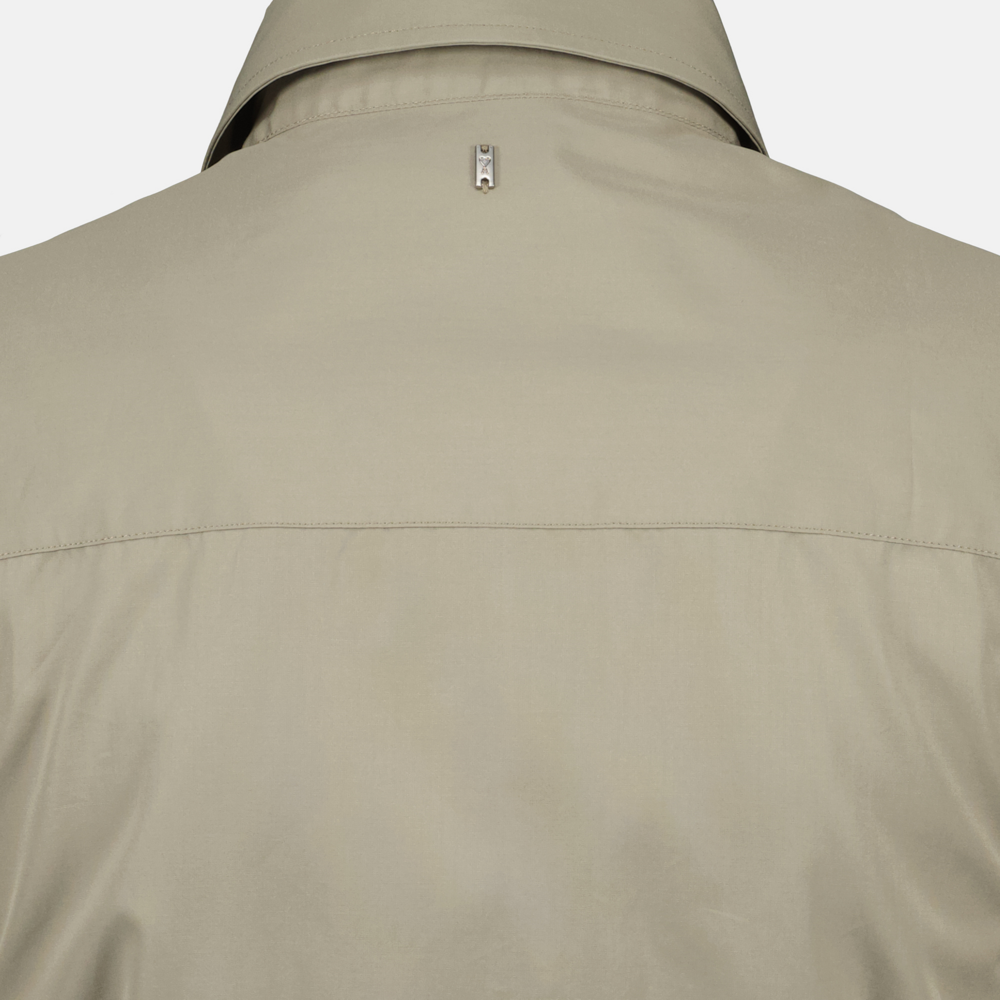 Robe chemise en coton AMI Paris pour femme de la collection Printemps-Été 2025. Elle présente un col à revers, des manches courtes et une coupe midi en vert kaki.