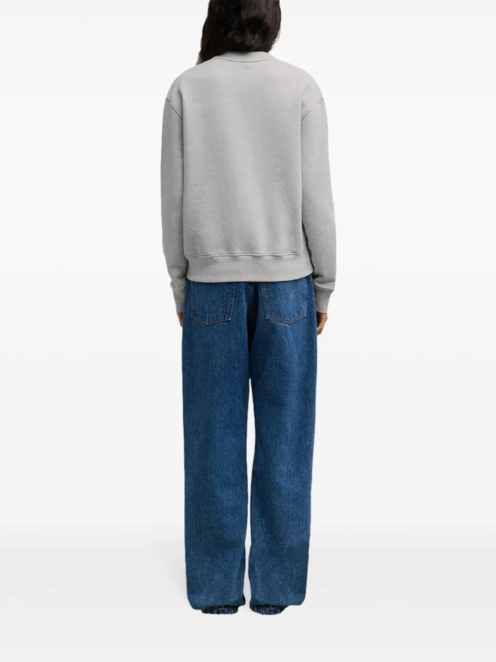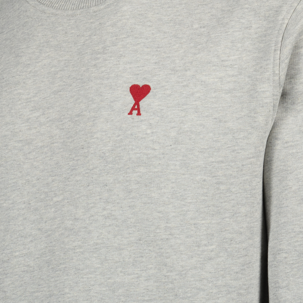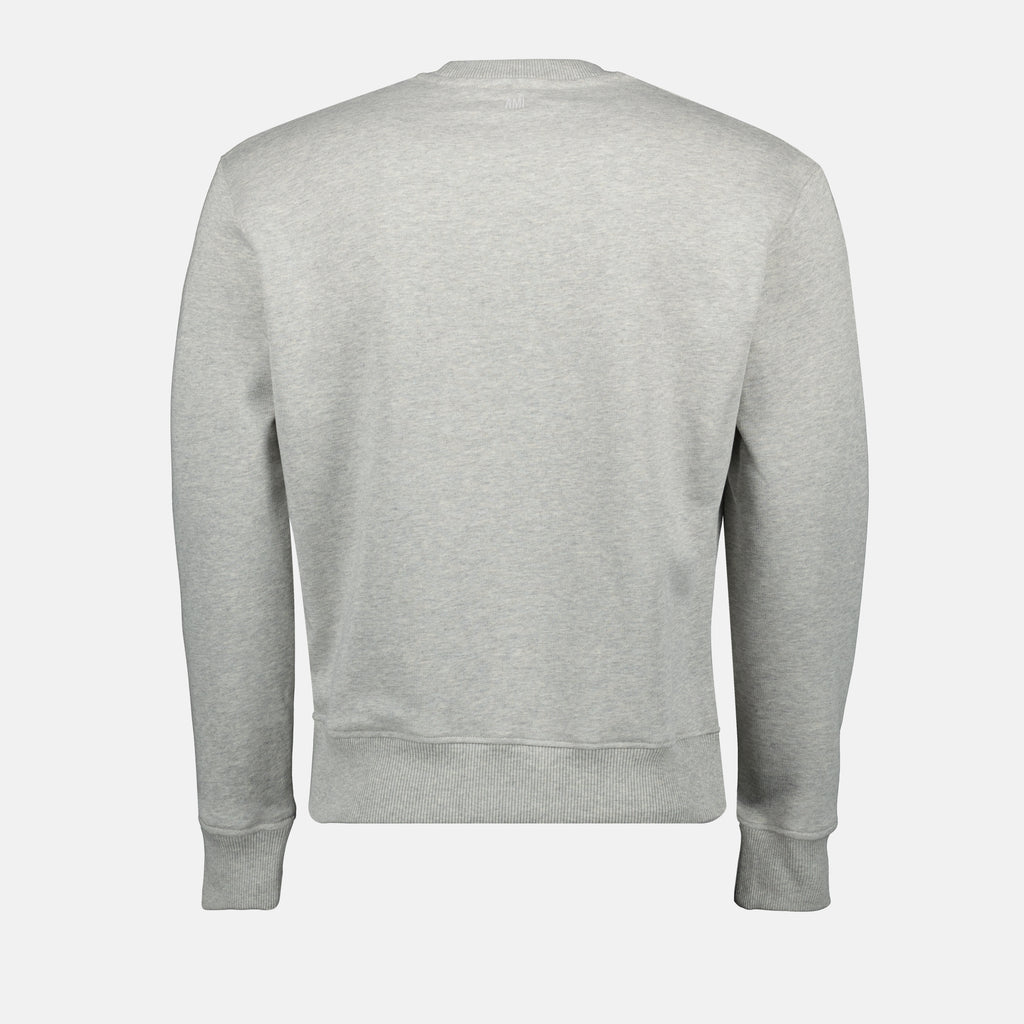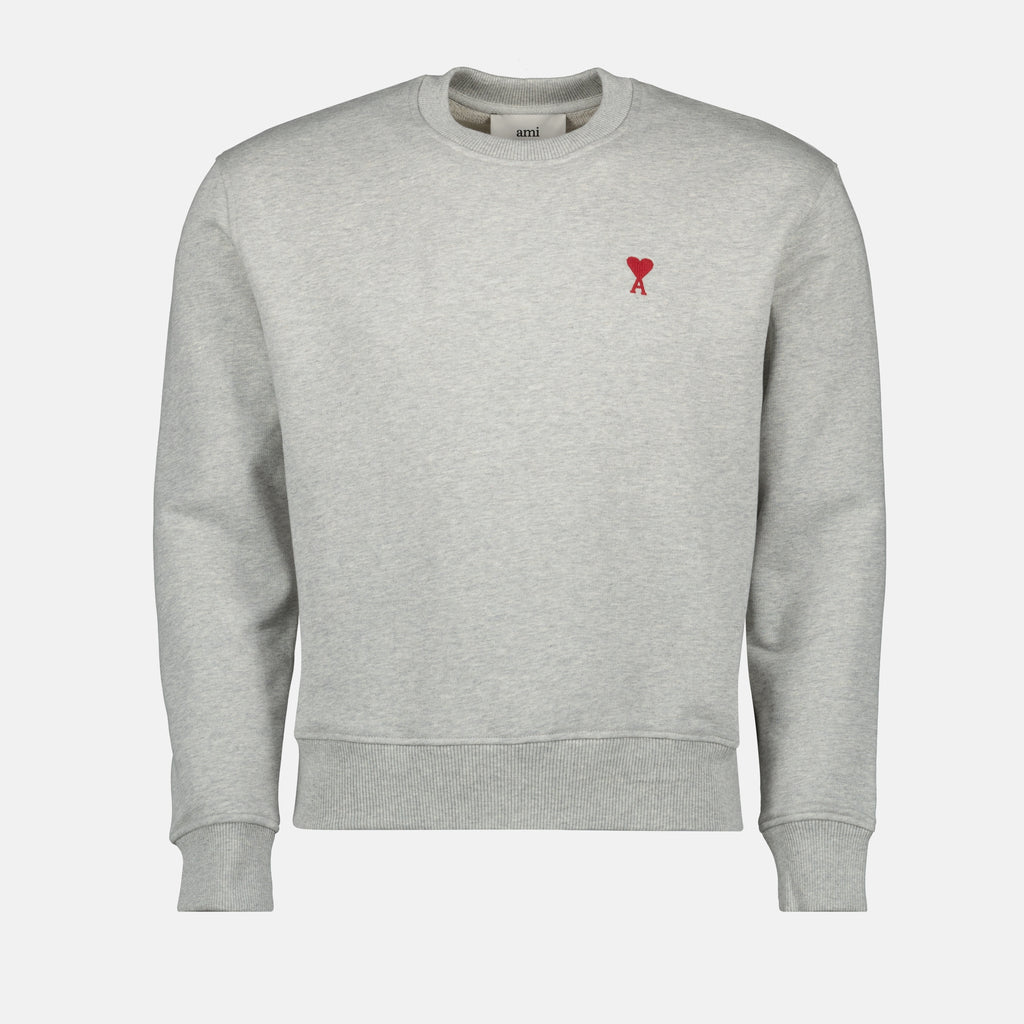 Le sweatshirt Ami de coeur gris de la marque AMI Paris est un modèle unisexe de la collection Printemps-Été 2025. Il est réalisé en coton avec un logo brodé sur la poitrine et au dos.