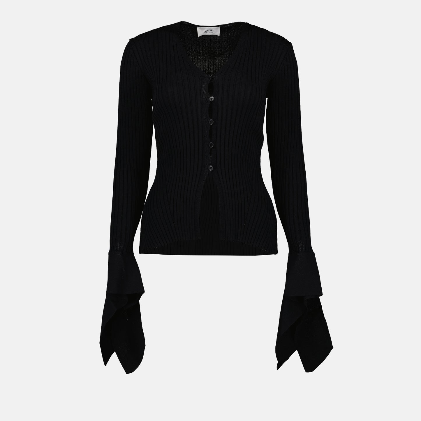 Maille Cardigan côtelé Ami PARIS Noir Femme