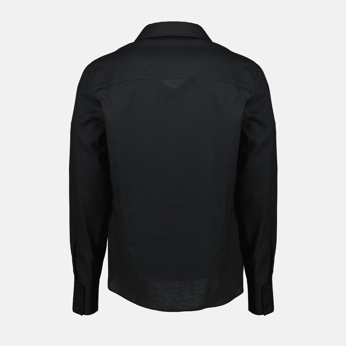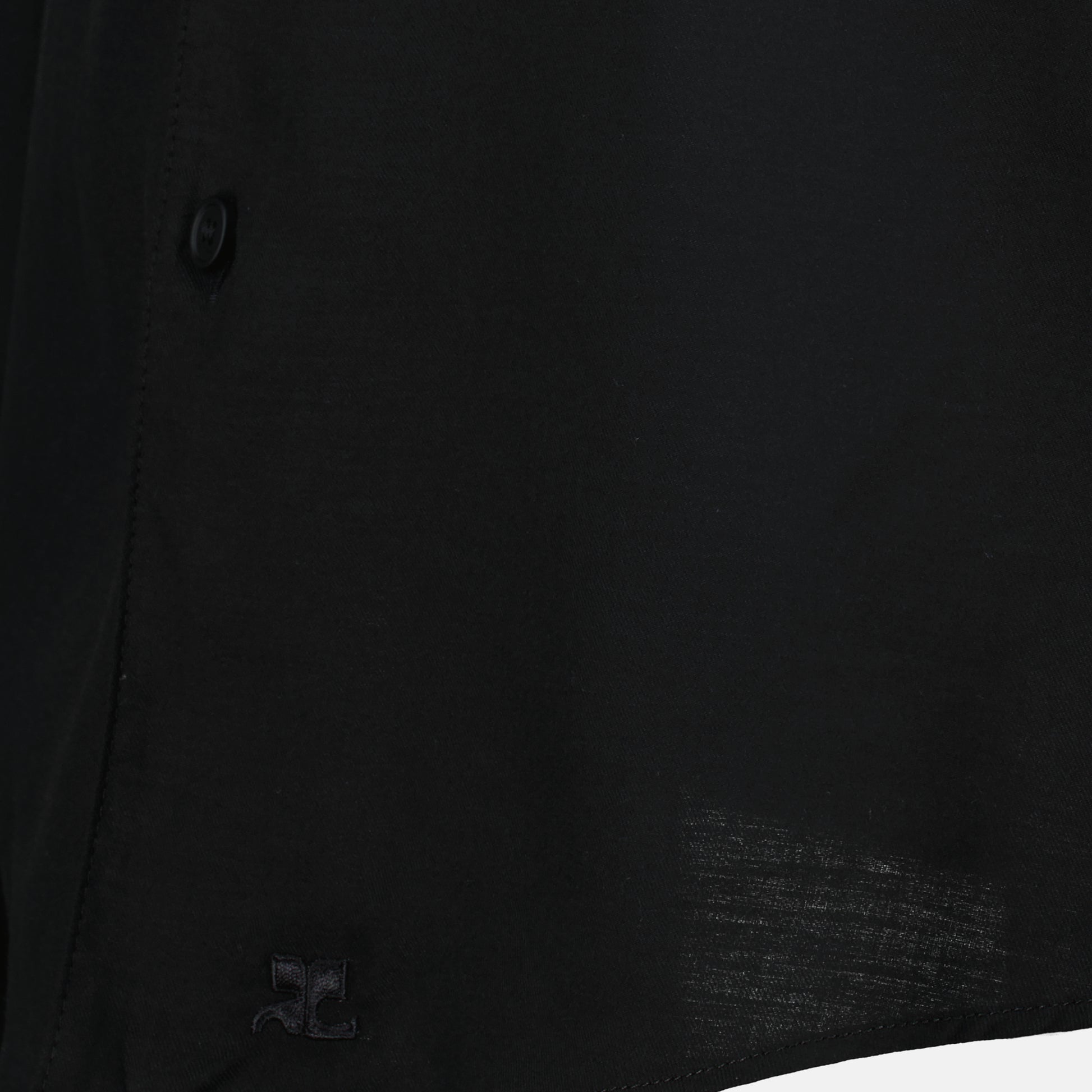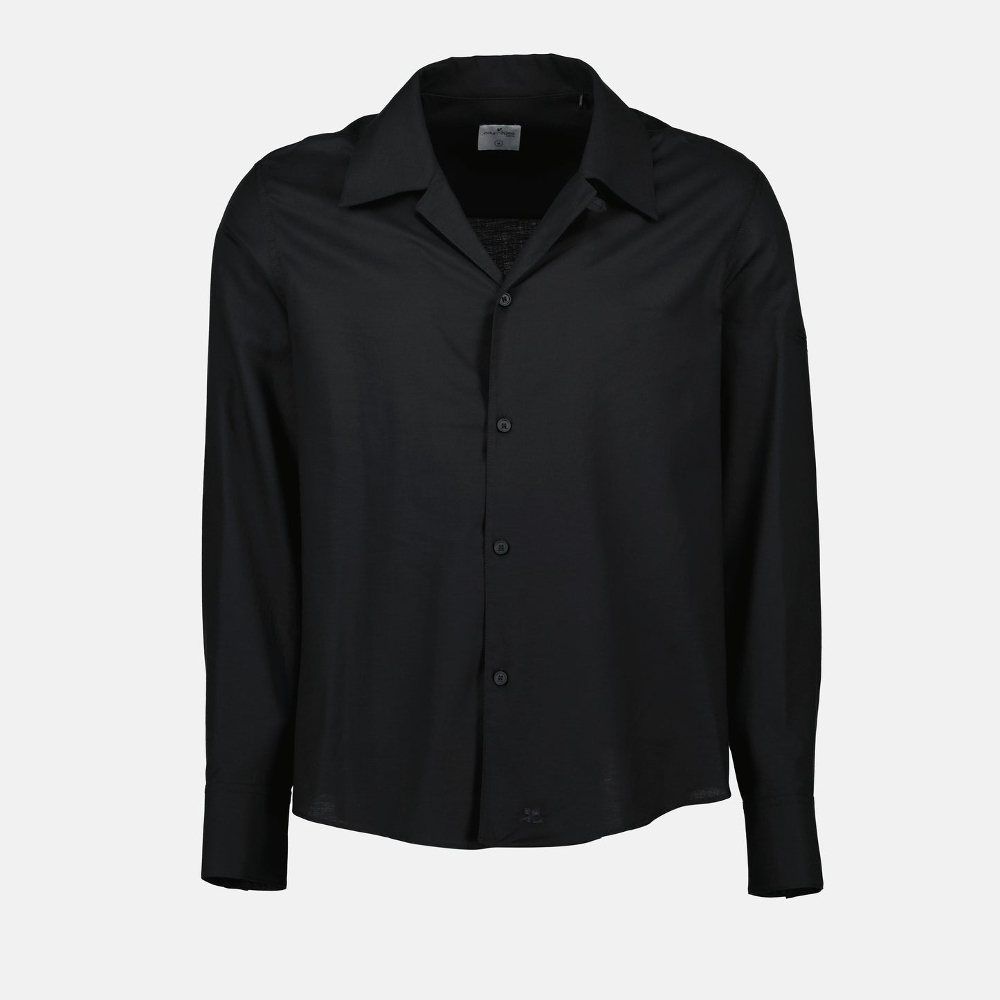 Chemise en coton noir AC de Courrèges pour homme, réalisée en coton et soie. Cette pièce fait partie de la collection Printemps-Été 2025 et présente un col à revers en pointe.