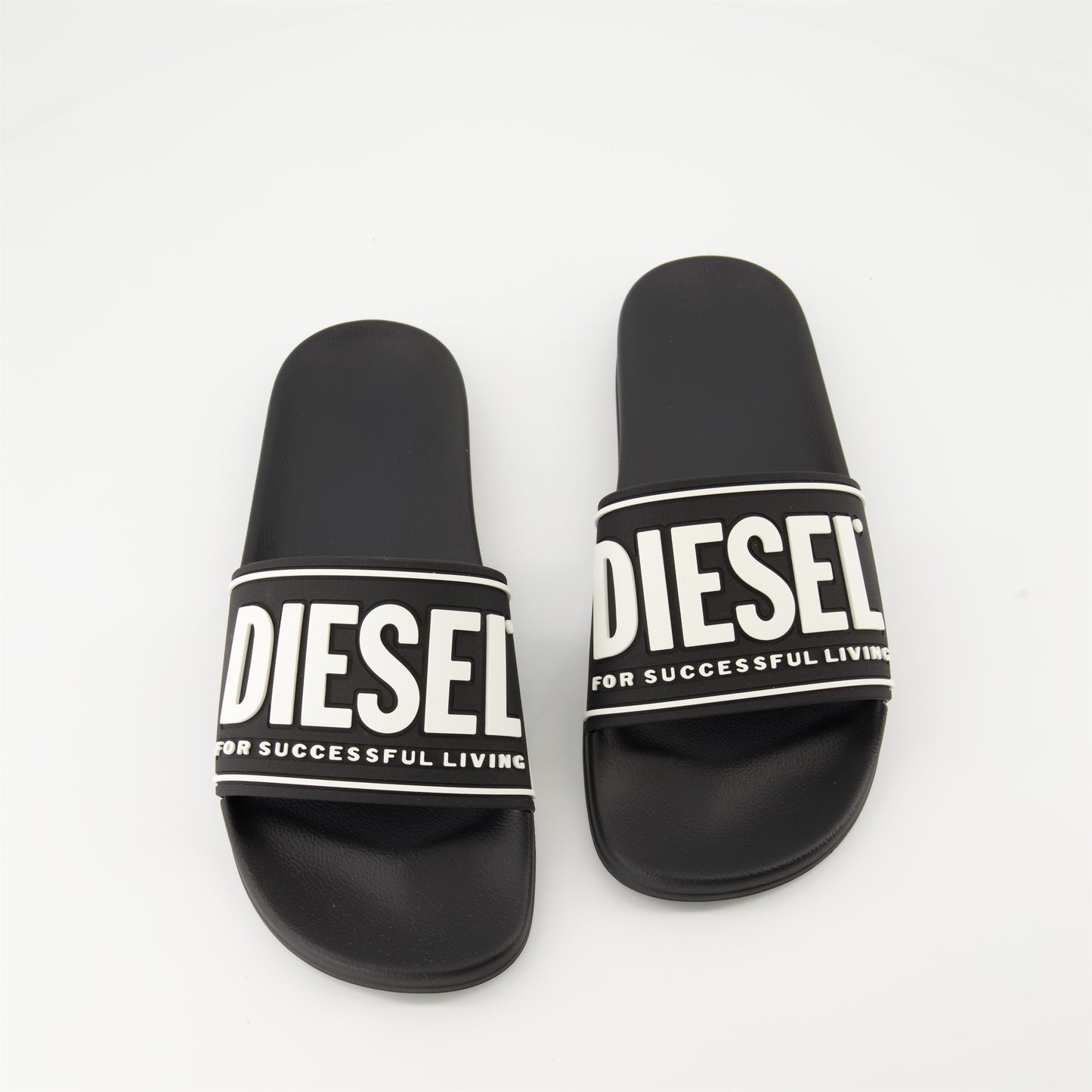 Claquettes Mayemi Diesel collection Automne-Hiver 2024 pour Homme. Réalisé en caoutchouc. Article de couleur Noir. Bout ouvert arrondi et Semelle moulée confortable.