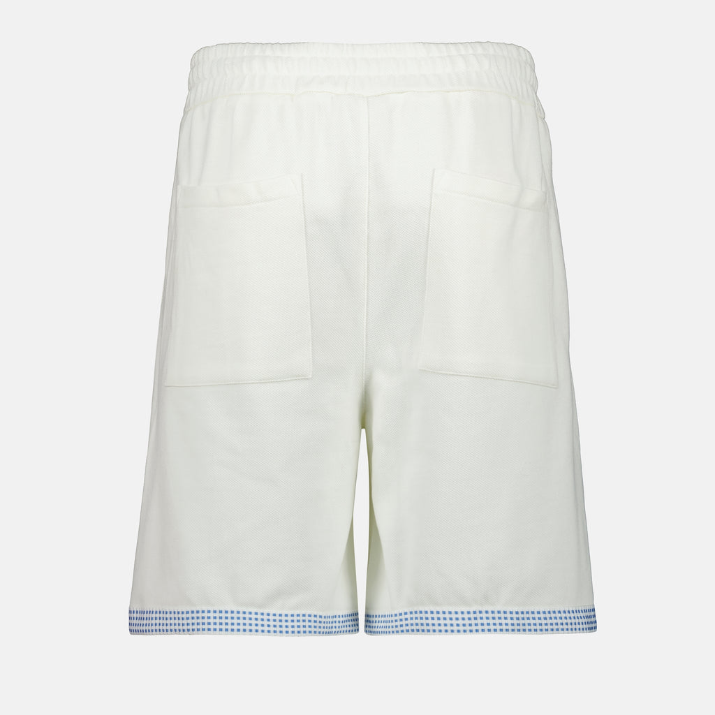 Short en coton piqué blanc de la marque Drôle De Monsieur pour homme. Ce modèle fait partie de la collection Printemps-Été 2025 et présente une coupe large avec des détails soignés.