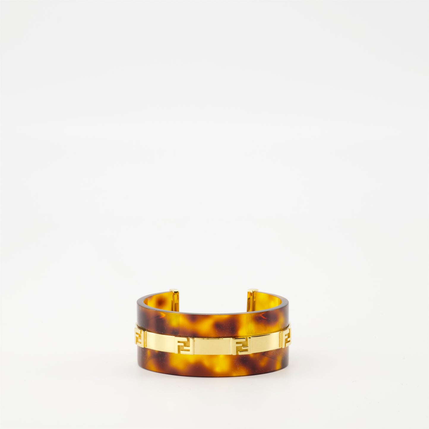 Le Bracelet Forever de Fendi est un accessoire rigide en plexiglas marron et bronze, conçu pour les femmes. Il fait partie de la collection Printemps-Été 2025.