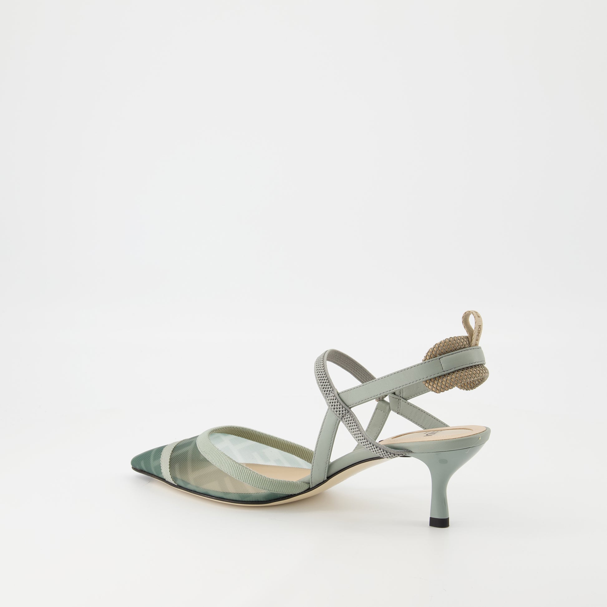 Les escarpins Colibrì bleus de Fendi sont des chaussures pour femme de la collection Printemps-Été 2025. Ils allient cuir et polyamide avec un design élégant et moderne.