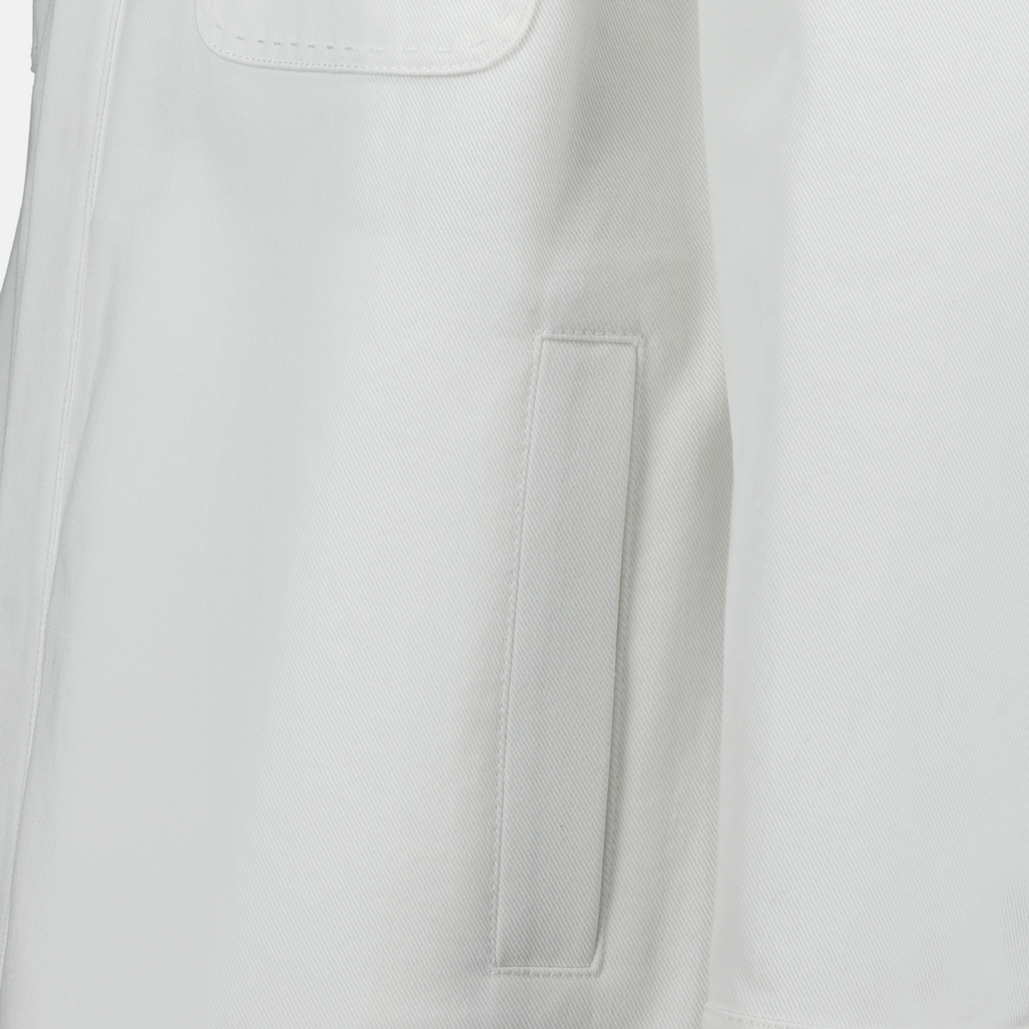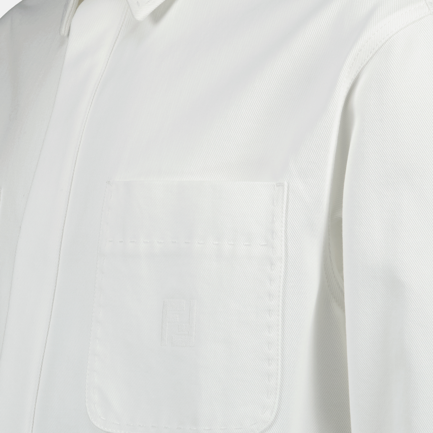 Veste en jean blanche de Fendi pour homme de la collection Printemps-Été 2025. Réalisée en coton, elle présente un col classique, des manches longues et des détails élégants.