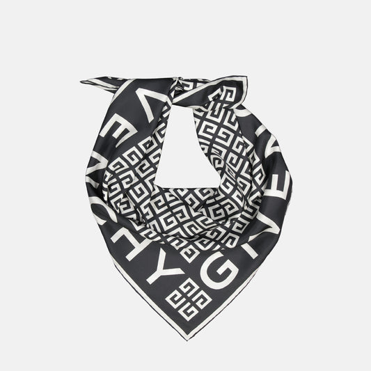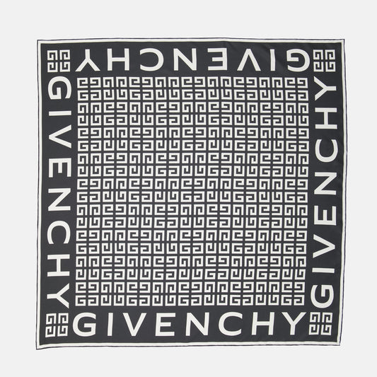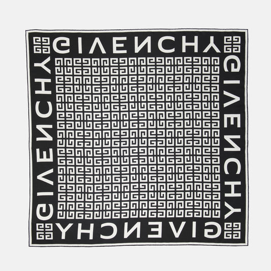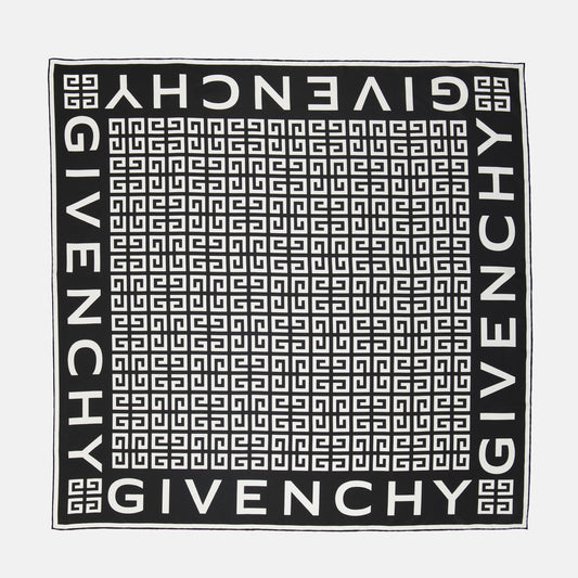 Écharpe 4G en laine grise de Givenchy, destinée aux femmes. Cette pièce fait partie de la collection Printemps-Été 2025 et arbore un logo imprimé et des bords frangés.