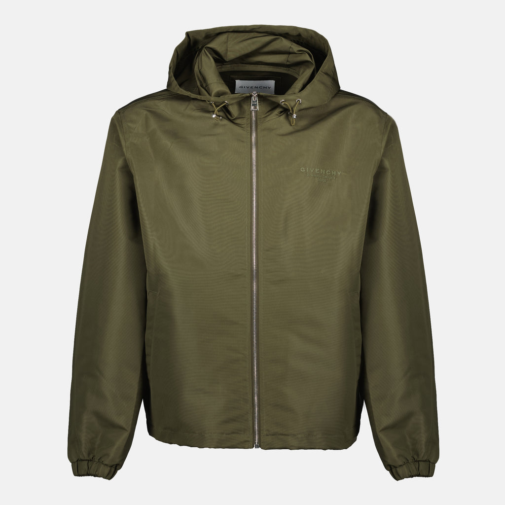 Veste coupe-vent kaki de Givenchy pour homme, réalisée en nylon et polyester. Cette pièce fait partie de la collection Automne-Hiver 2025, alliant style et fonctionnalité.