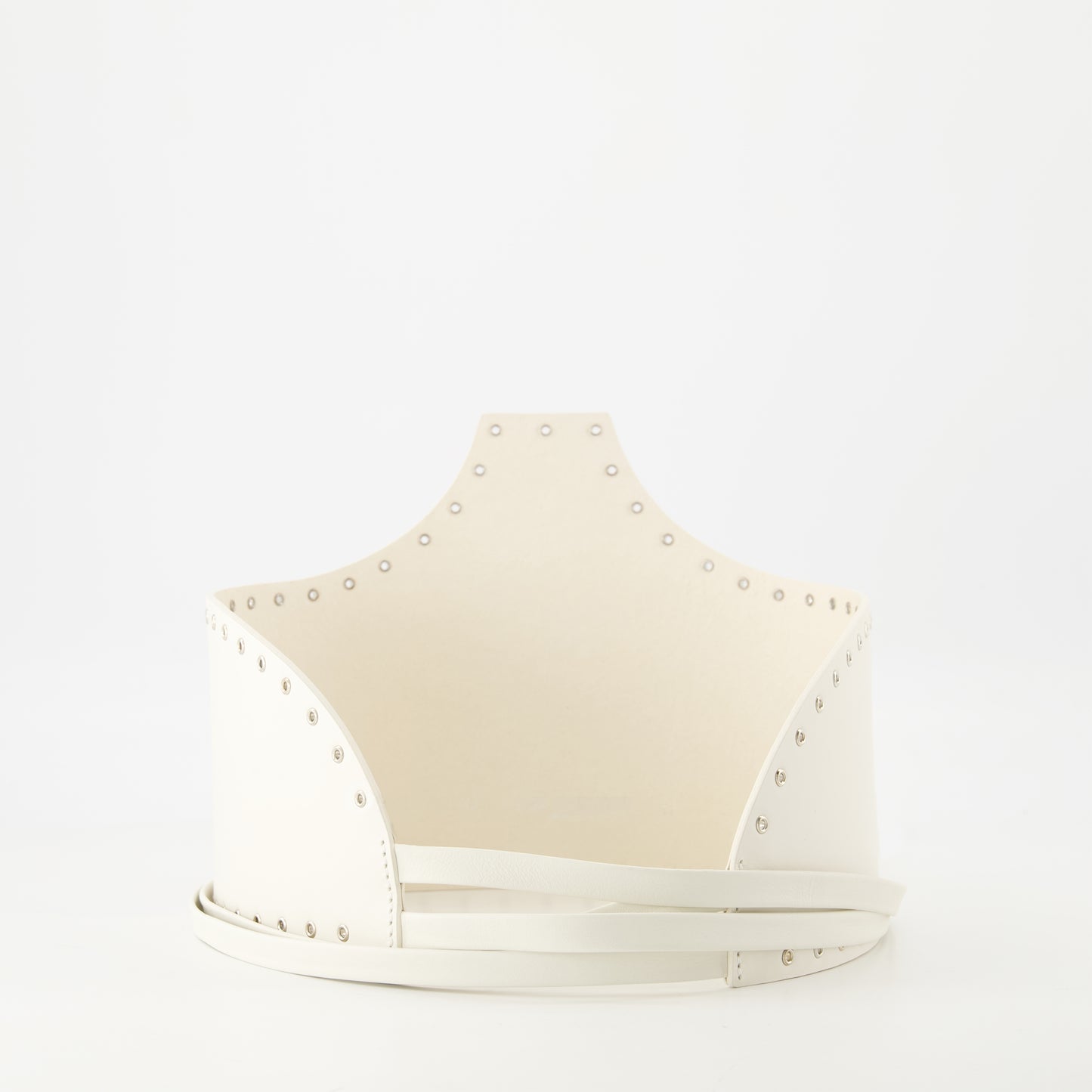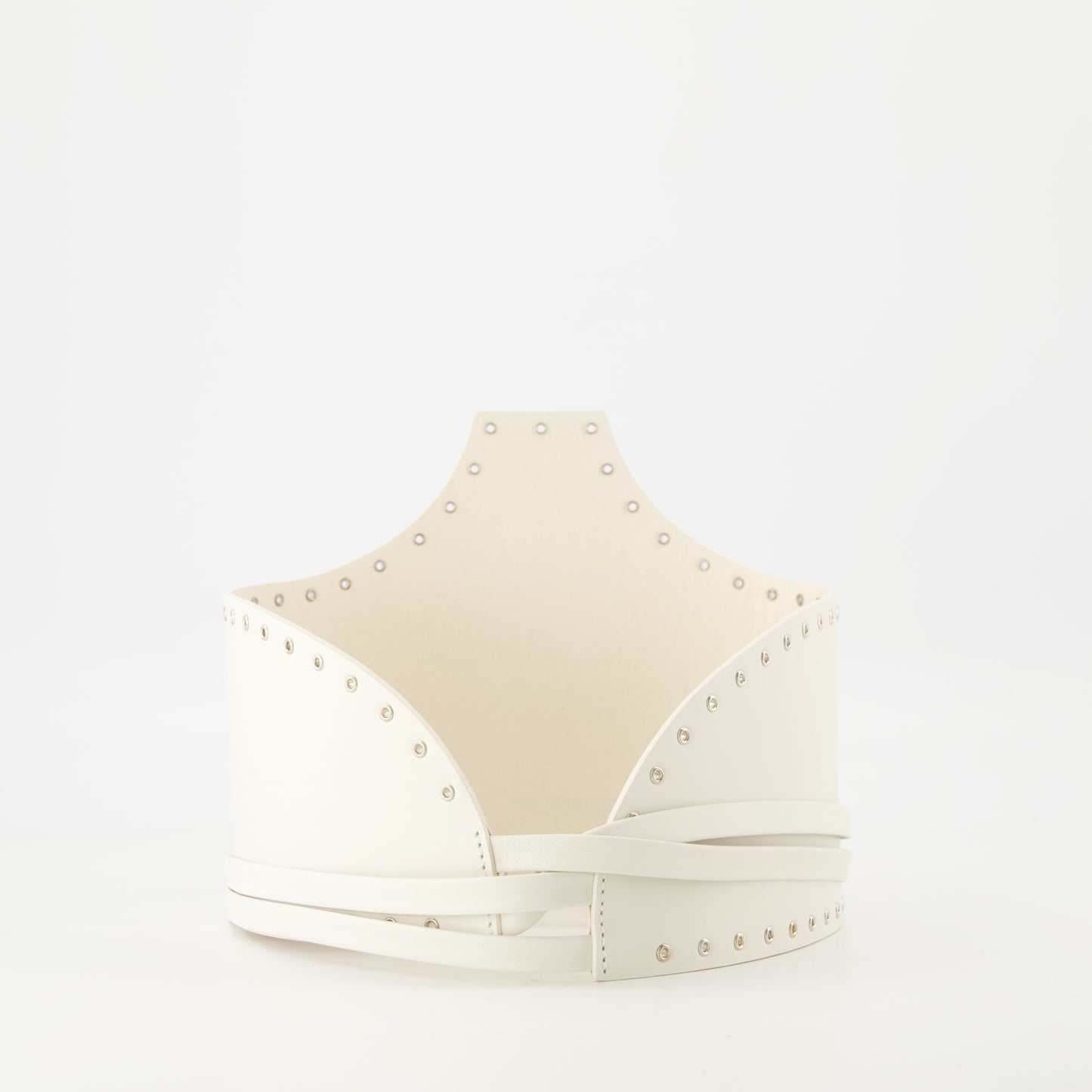 La ceinture en cuir Lanny blanche d'Iro est un accessoire féminin au design corset. Elle fait partie de la collection Printemps-Été 2025 et est réalisée en cuir de vache.