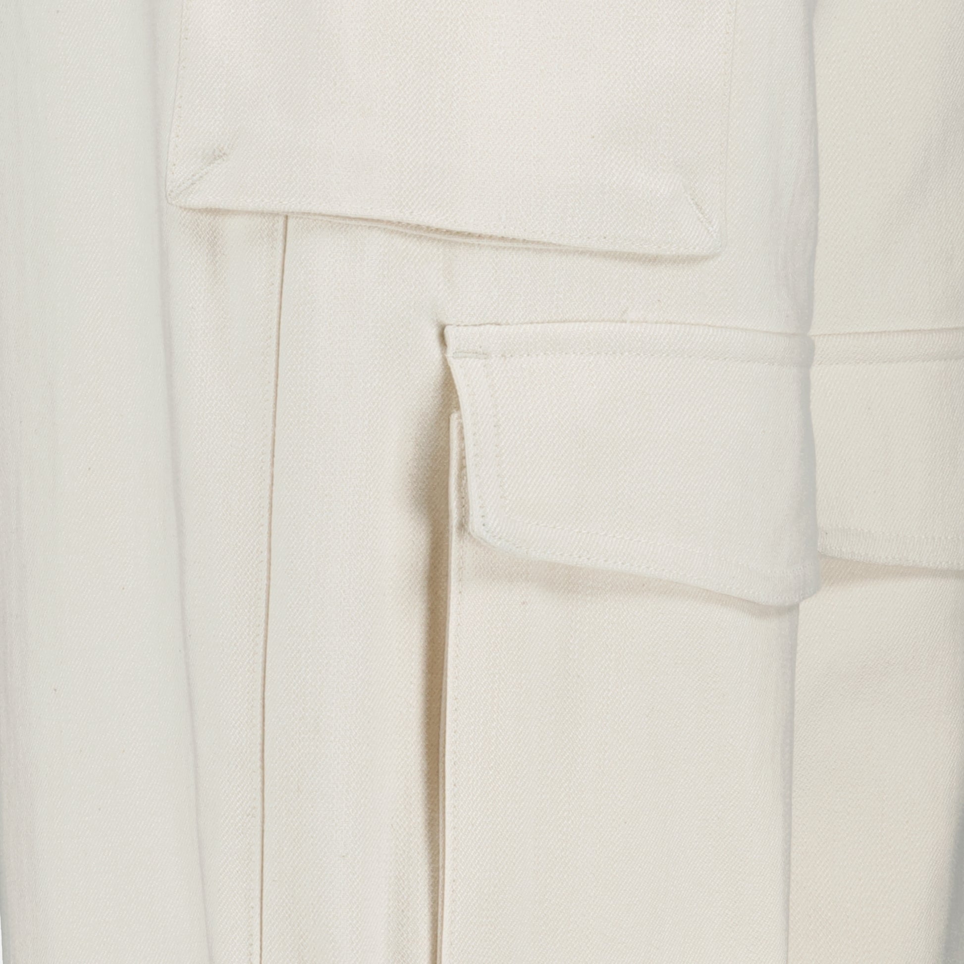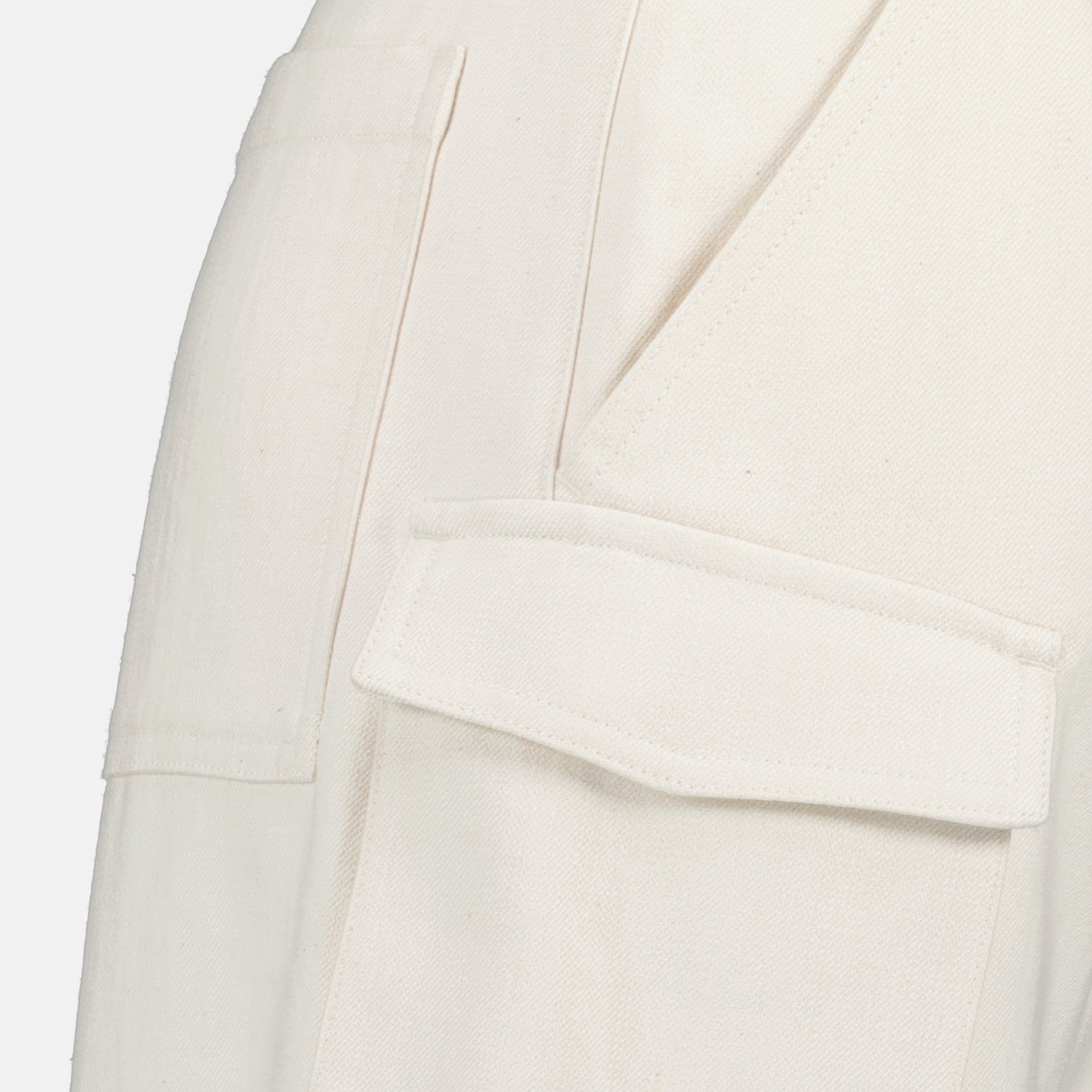 Pantalon cargo Polina blanc de la marque IRO pour femme. Ce modèle fait partie de la collection Printemps-Été 2025 et est réalisé en coton avec des poches latérales et sur les genoux.
