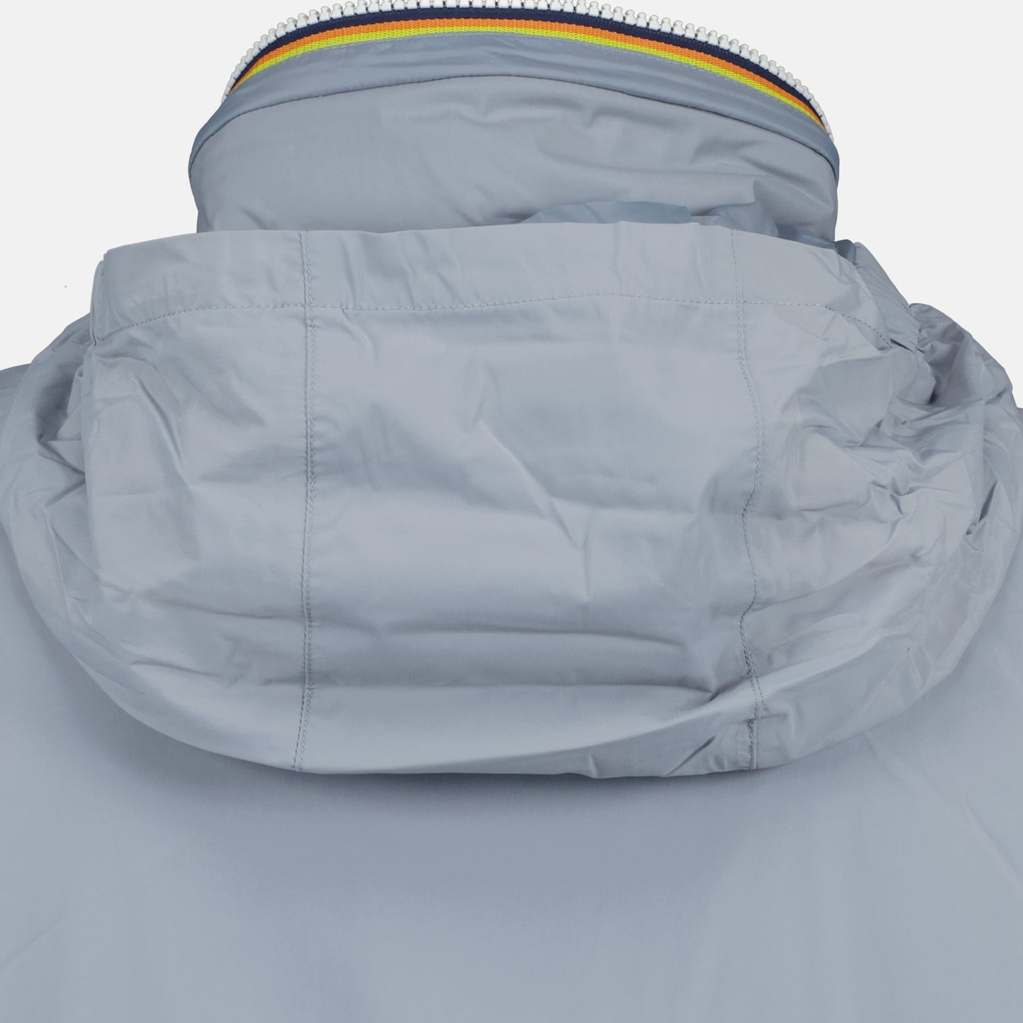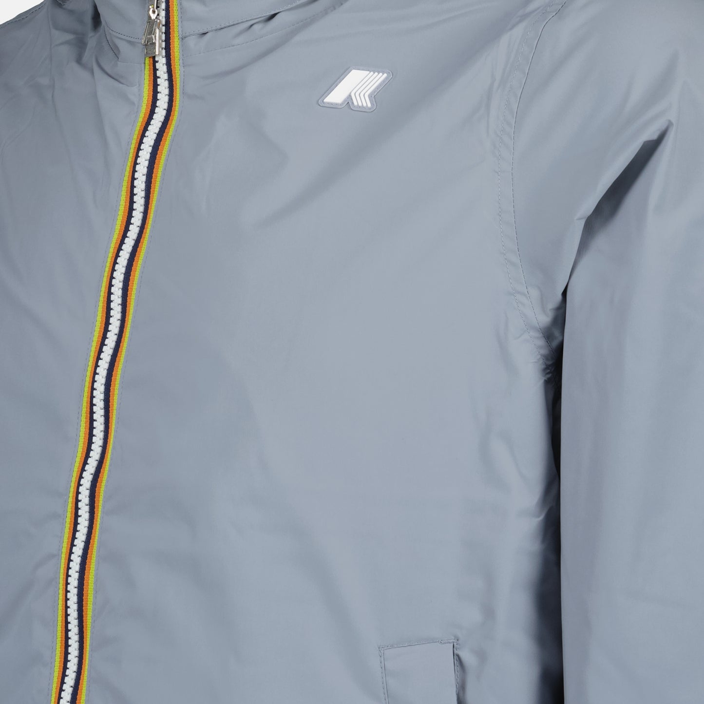 Le coupe-vent Amaury gris de K-Way est un vêtement pour homme de la collection Printemps-Été 2025. Il allie style moderne et fonctionnalité avec sa capuche pliable et ses poches zippées.