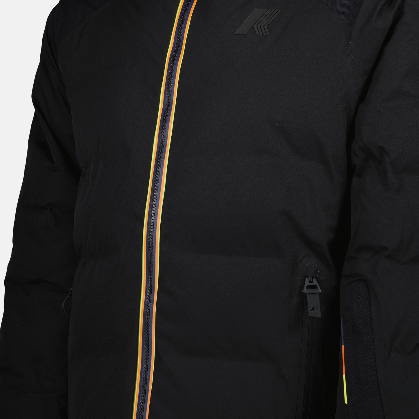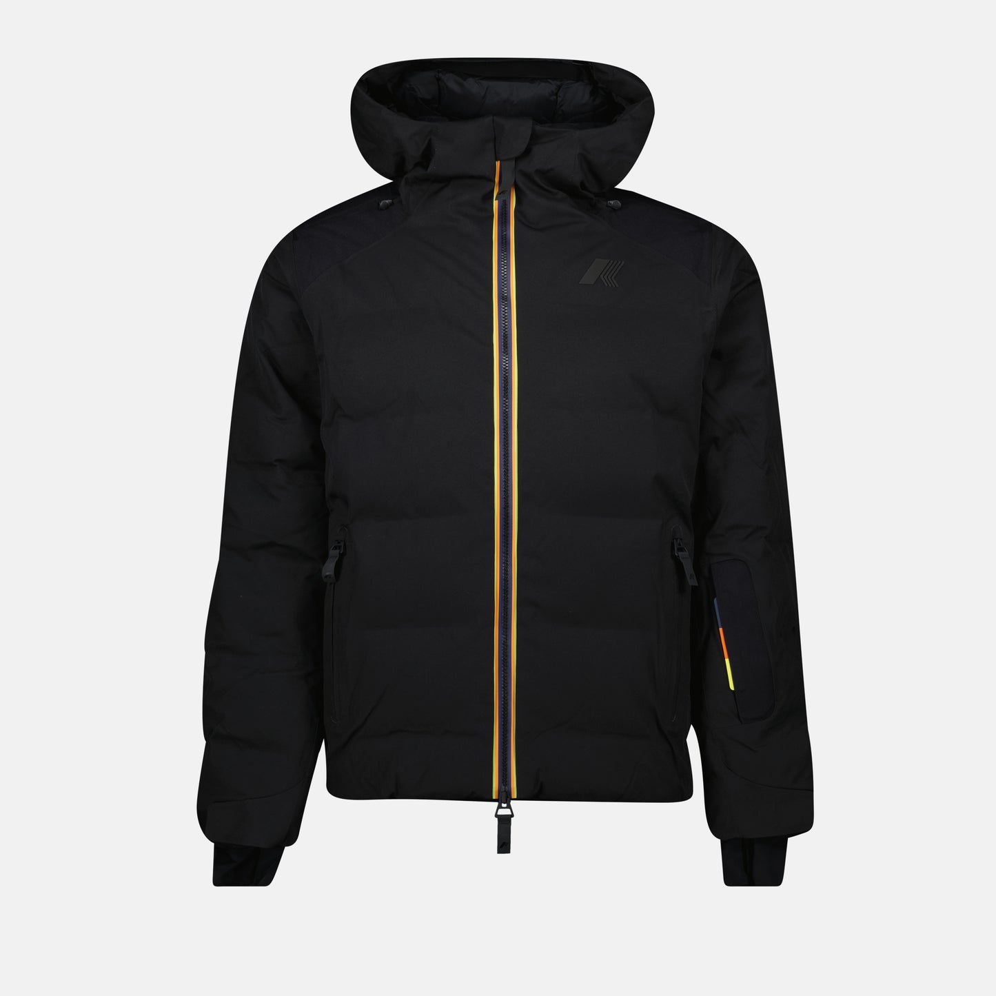 Doudoune Meribel noire de K-Way pour homme, alliant style et confort. Cette pièce de la collection Automne-Hiver 2024 est conçue en nylon stretch, imperméable et respirant.